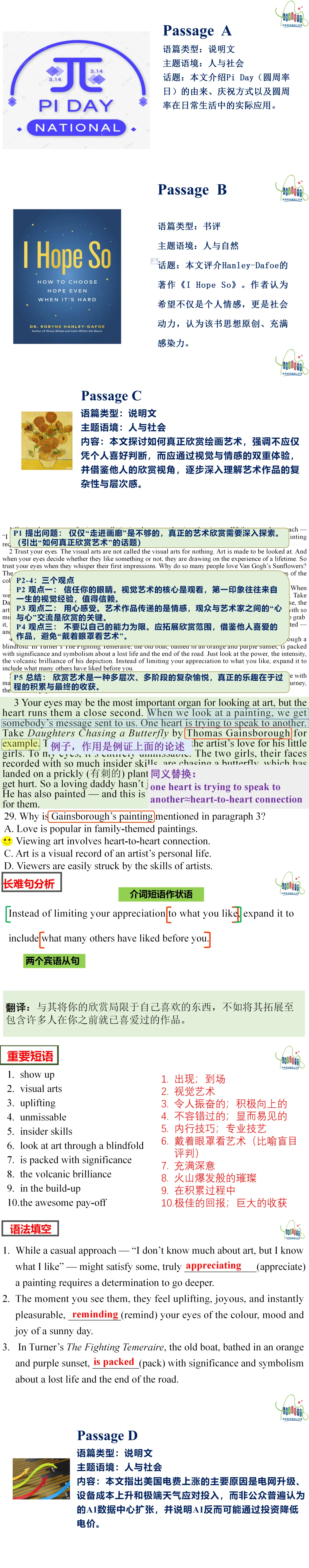 以下仅展示部分内容(完整版内容非常丰富)(所有阅读语篇都是和C篇一样的解析模式,包括核心词汇,长难句分