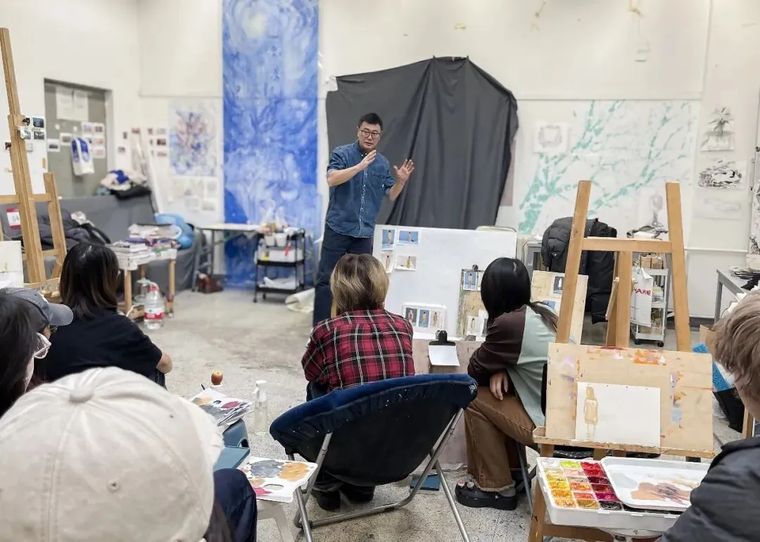 “色彩表现”是中央美术学院壁画系第三工作室面向本科三年级开设的一门核心专业必修课,该课程在讲授色彩原理与视觉规律的基础上,重点探索色彩在空间环境、情感表达以及当代壁画创作中的实际应用与叙事功能,构建了“基础训练”与“创新实践”的双阶递进路径。课程教案充分体现了教学规划,前四周以小尺幅的静物与人体肖像写生为主,进行高频次的基础训练;后四周则过渡到大尺幅装置壁画设计的综合创作;作业布置严格遵循“由简到繁、由小到大”的原则,结合课堂写生、课后临摹以及中西色彩比较,引导学生从被动描摹客观对象,逐步转向主动运用色彩进行主观表达。