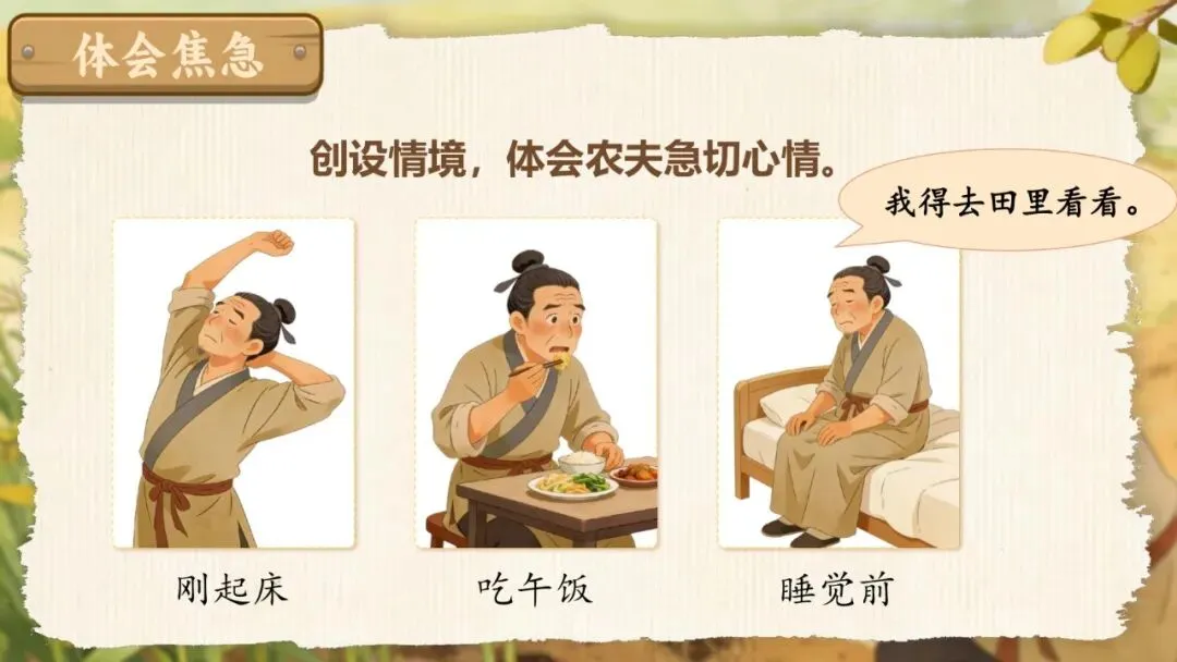 师:让我们创设情境,理解一下农夫急切的心情吧!