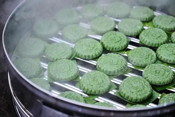 挤去水分的艾草,在热锅里轻轻一炒,香气便倏然醒来。而后与糯米粉、白糖一同揉和,掌心之下,渐渐融成一团温润柔软的碧玉。裹入炒香的芝麻或花生碎,团成圆子,再轻轻一按,便有了敦厚可爱的模样。垫上一片清香的柚子叶或阔大的芭蕉叶,上屉蒸熟。揭盖时,艾草与绿叶的清香交融四溢,那软糯甘甜之中,沁着山野的灵气与岁时安稳的滋味