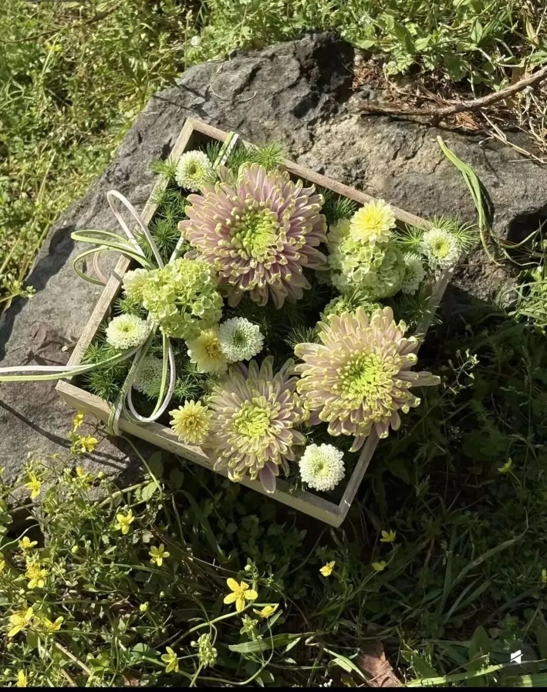 绿是生机,是永恒。 我们可以理解为这是来自当下萌发,也能蔓延至未来的颜色。是“野火烧不尽”的春草,是“松柏有本性”的长青。它让作品脱离单一维度,将花礼从单向的纪念,转变为时间的驿站,在缅怀的静谧中,感受生命自身的磅礴;在记忆与希望之间,架起一座生生不息的桥梁——这抹绿,是思念的回响,温柔地提醒我们,爱与被爱的记忆,教我们如何带着过去的深爱,在当下更好地生活,怀念不是沉溺于失去,而是学会在回望中,汲取继续前行的温柔力量