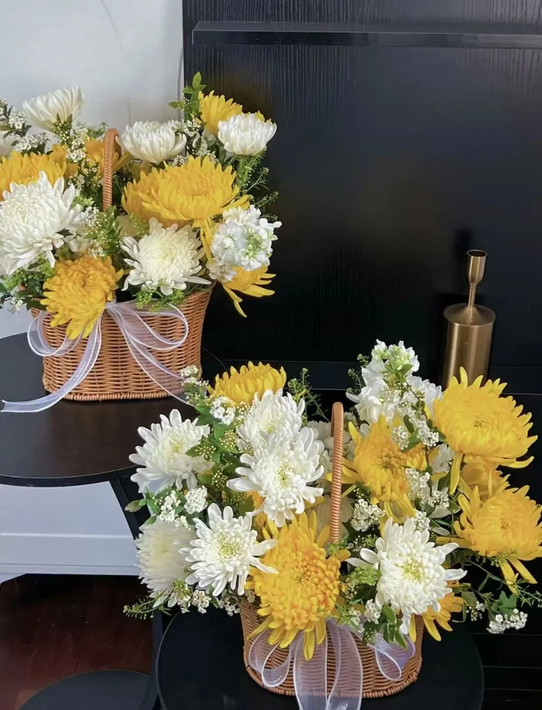 白为底色,留白之意。如初雪覆地,如月华洒庭,是一切色彩的基底,也是一切情感的容器。它代表着澄澈的哀思与至高的敬意。在作品中,白色是空间,是呼吸,是让其他色彩得以沉淀的背景。我们选用白菊、百合,便是取这份“素处以默,妙机其微”的东方美学