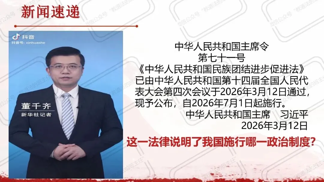 3.2026年3月12日,十四届全国人大四次会议表决通过《中华人民共和国民族团结进步促进法》。该法将“铸牢中华民族共同体意识”写入法律,明确了各级政府在促进民族团结进步方面的职责,并对破坏民族团结的行为划定了法律红线。这表明( )