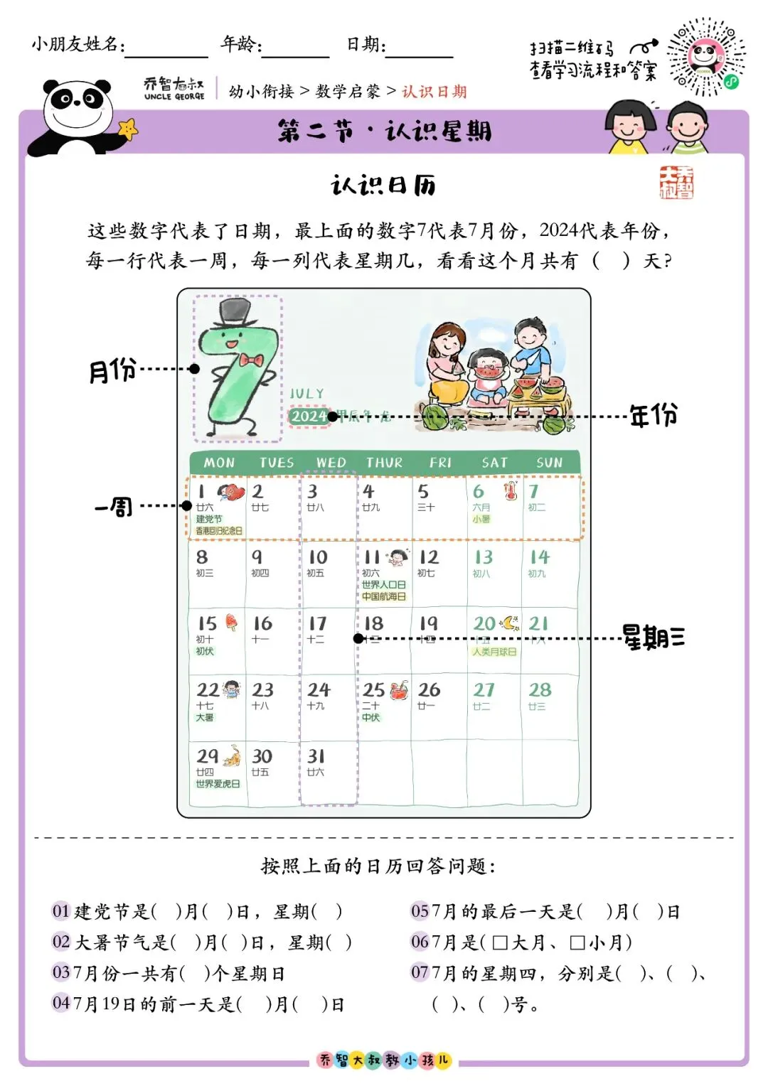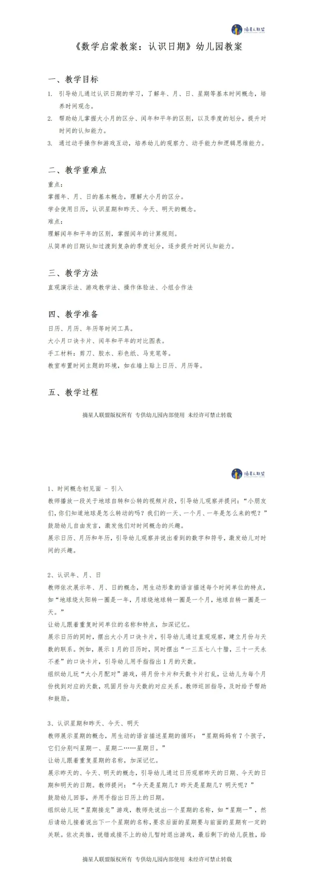 >幼儿园数学启蒙教案:认识日期(含小中大班课件+教案+素材)