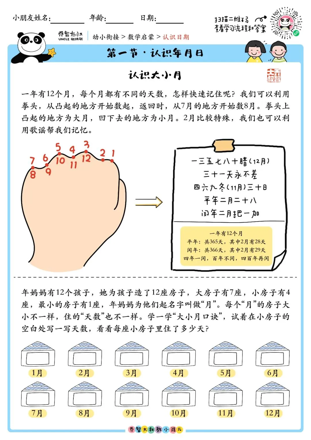 2.帮助幼儿掌握大小月的区分、闰年和平年的区别。