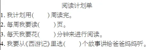 1.过渡:《西游记》这本书中有许多这样有趣的故事,在读整本书之前,我们可以给自己制订一个读书计划。
