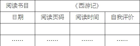3.发放“阅读记录单”,安排学生按照计划阅读《西游记》,并填写“阅读记录单”。还可以用表格或自己喜欢的方式记录阅读进度。如: