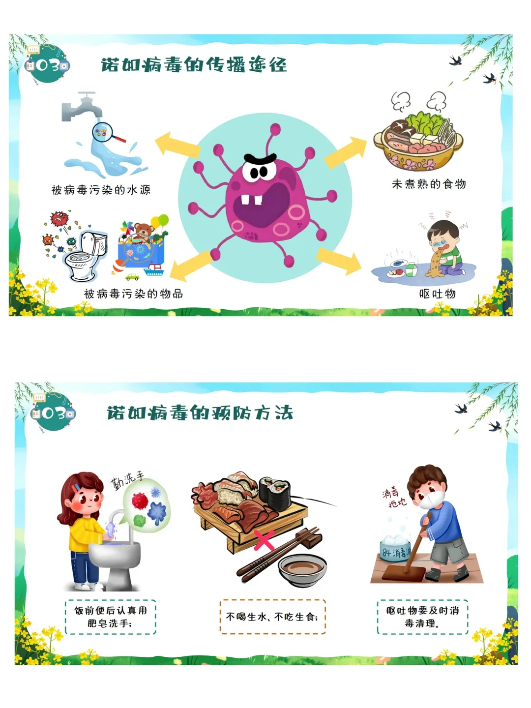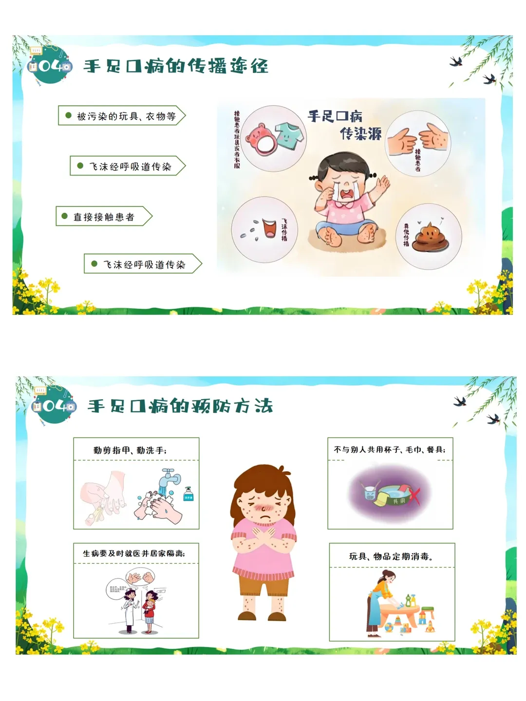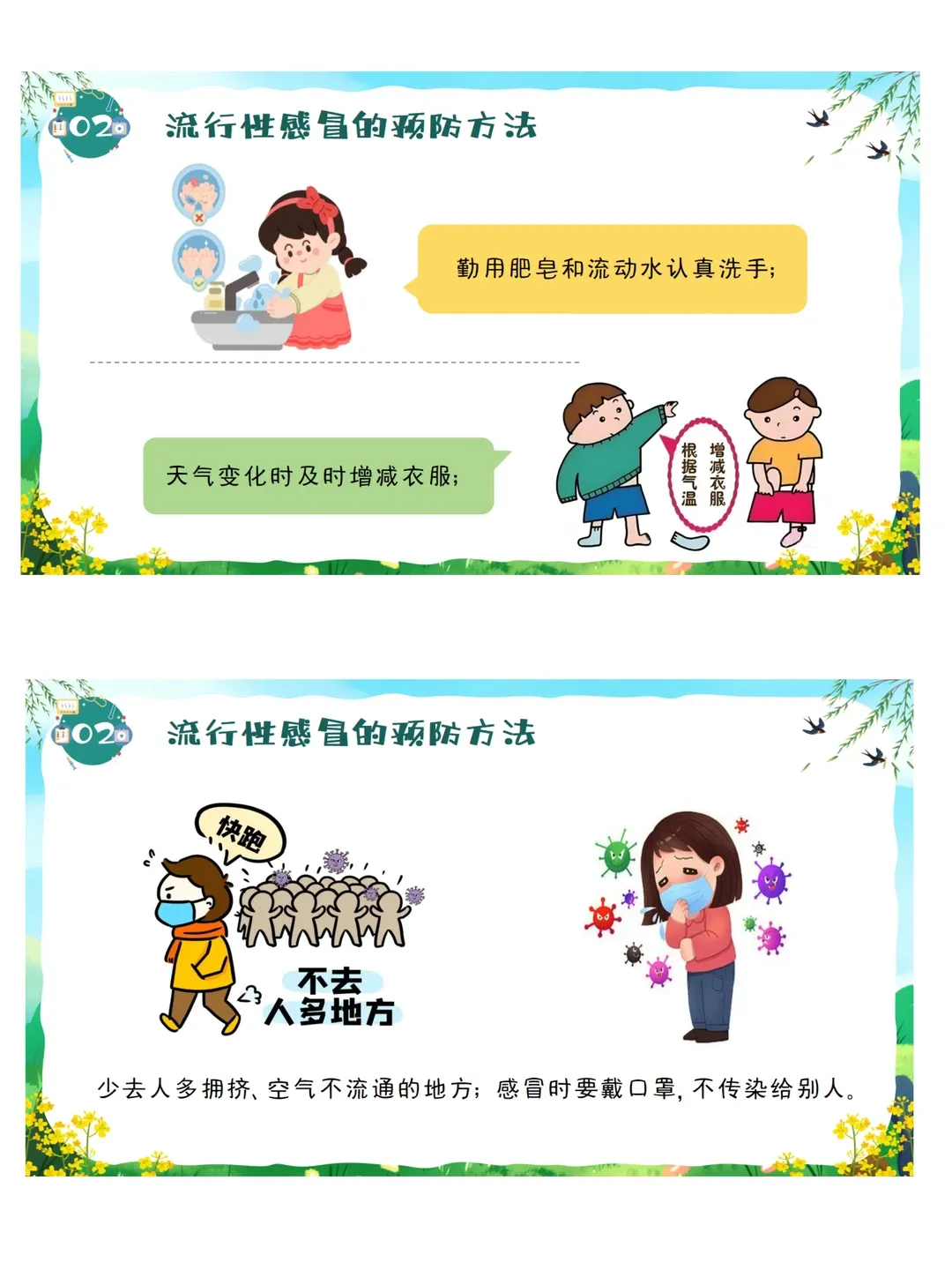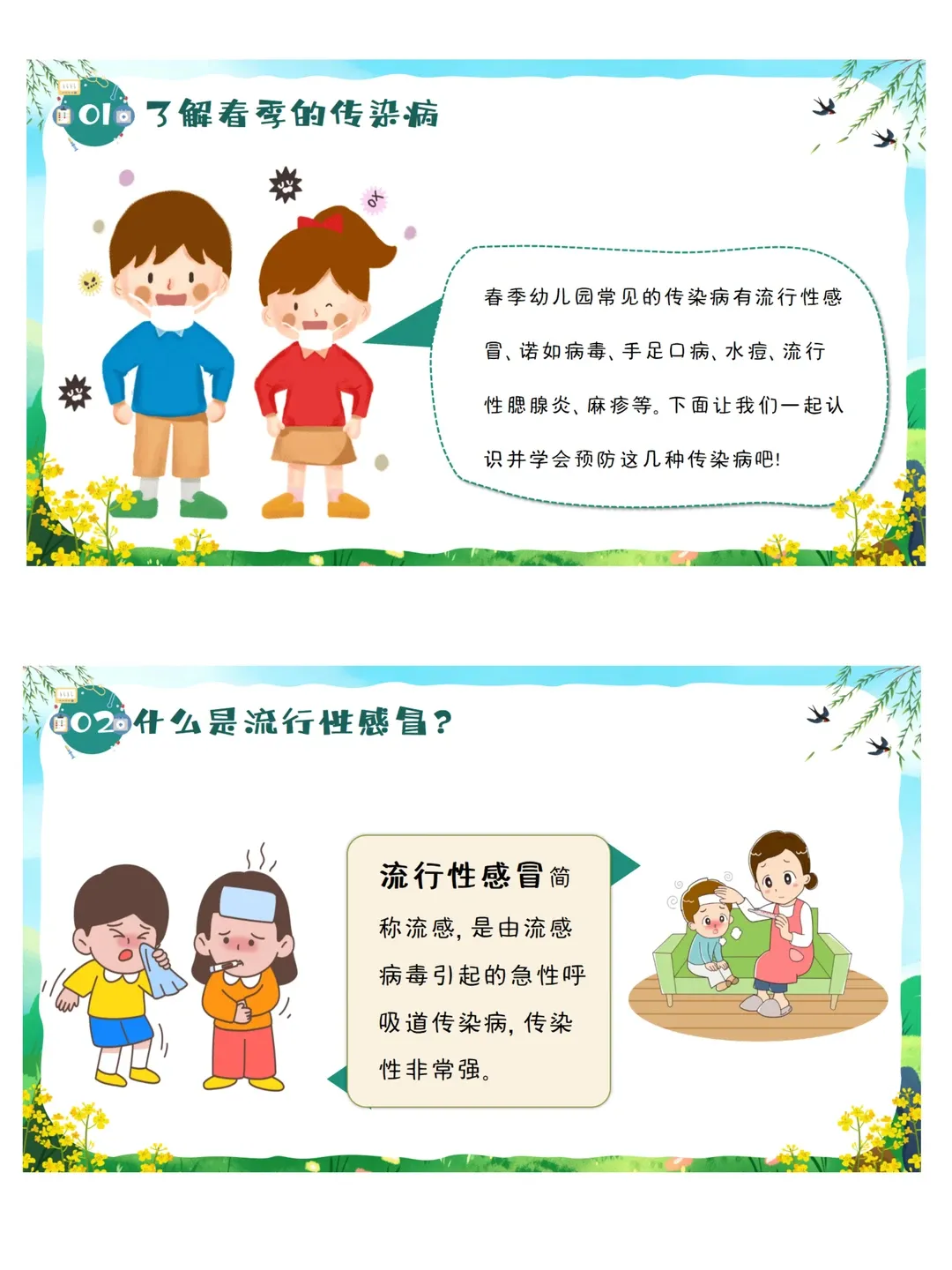 依据《3-6岁儿童学习与发展指南》健康领域目标要求:教育幼儿养成良好的生活卫生习惯,了解基本的安全保健知识,提高自我保护能力。本活动采用图片观察、视频感知、互动问答、行为判断等幼儿易于接受的趣味形式,让幼儿系统认识春季常见传染病,了解传染病的基本症状与传播途径,掌握简单、科学、可操作的预防方法。通过生活化、游戏化的学习,引导幼儿主动关注自身健康,愿意在日常生活中做到勤洗手、常通风、讲卫生、多锻炼、少聚集、饮食均衡,逐步养成良好的卫生习惯和健康生活方式,增强自我保护意识与能力。