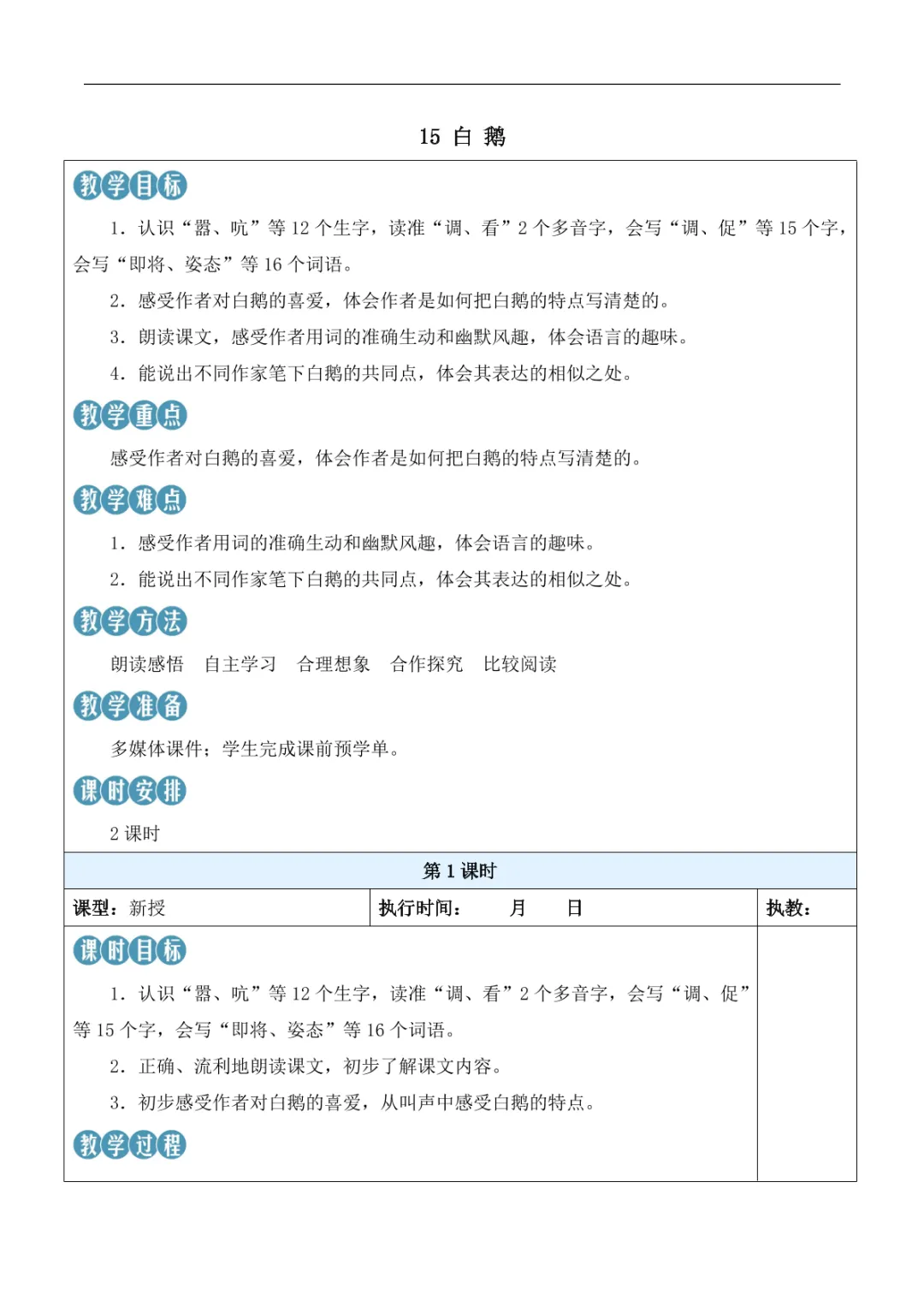 当前位置:首页>教案>部编版语文四年级下册《15 白鹅-教案》课件+教案+学习单