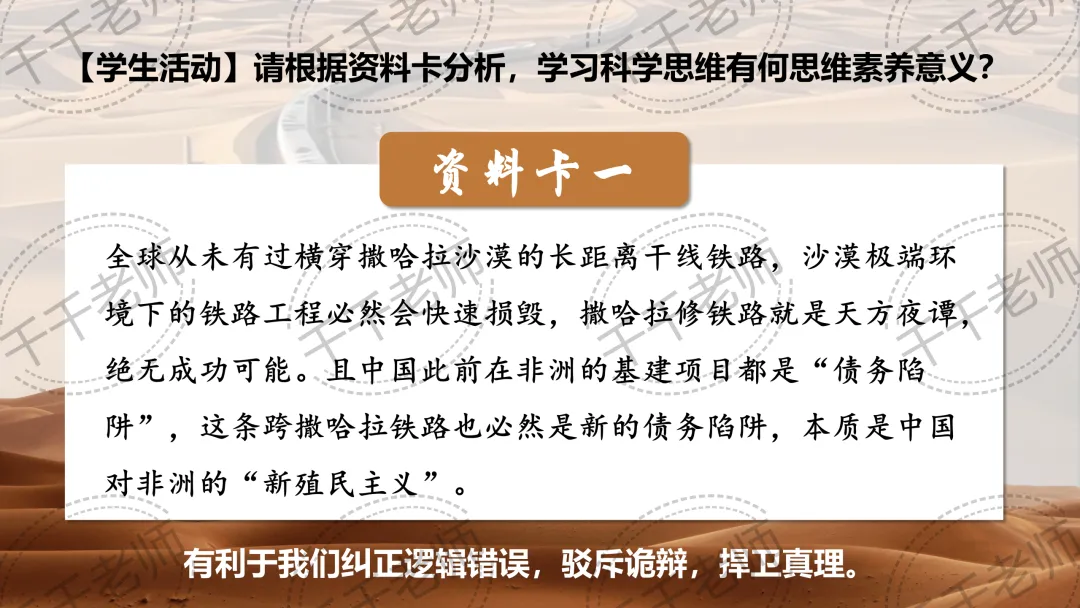 >优质课课件|2026高中政治选必三3.2学习科学思维的意义课件PPT+逐字稿(啥?中国人把铁路修到了撒哈拉大沙漠?!)