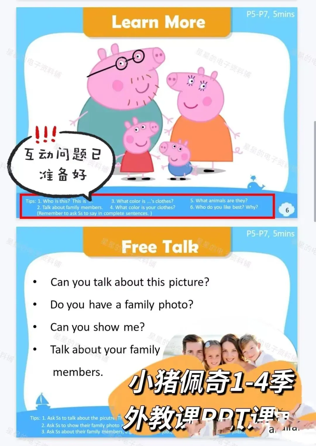 小猪佩奇外教课PPT课件(1-4季)PPT页面有上课提示词。第一季57个课件,第二季80个课件,第三季43个课件,第四季47个课件。