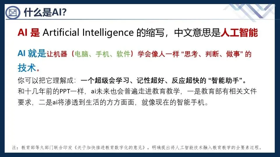 人工智能AI赋能教学培训讲座PPT课件,本课件为原创课件,全网独一份,经过讲座培训后,又修改了一下,还是比较使用的,讲解时要配合演示实操,效果还是相当不错的,文章末尾有课件的夸克网盘免费下载链接,大家可以自取,如果懒得使用夸克网盘,可以加小编微信wwwkelin直传,直传要收10米。