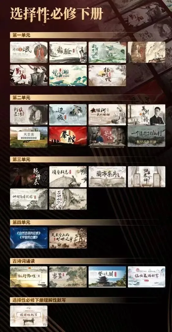 目前为止,统编版高中语文教材已经有5册与大家见面,其中必修教材分上、下2册,选择性必修教材分上、中、下3册。