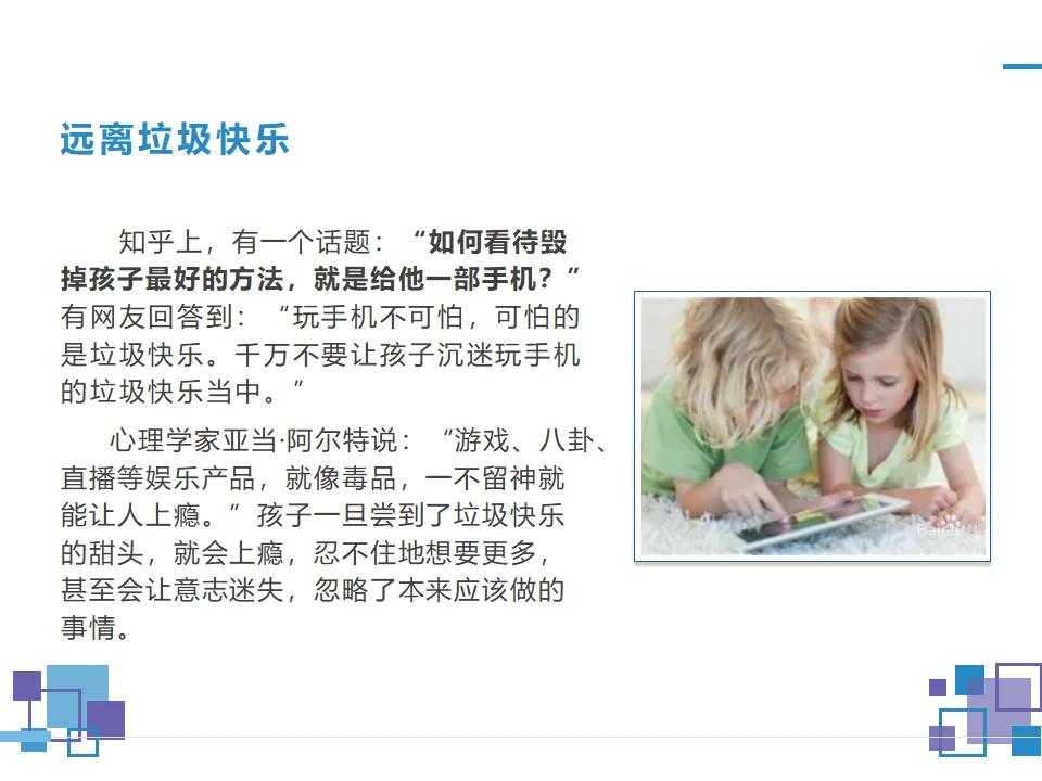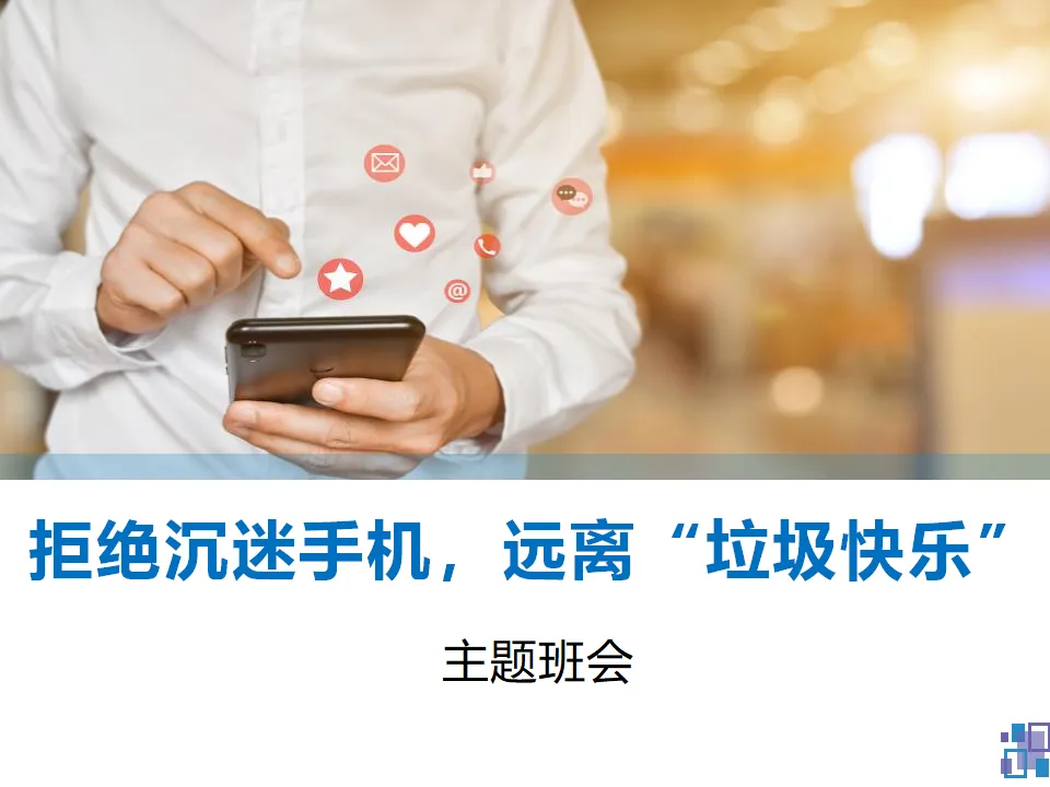 合理使用手机主题班会课件ppt:拒绝沉迷手机远离垃圾快乐,科学自律挣脱手机依赖枷锁(附19页ppt)