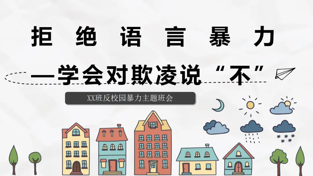 防校园欺凌主题班会课件ppt:拒绝语言暴力与欺凌,勇敢说不共建和谐平安校园(附16页ppt)