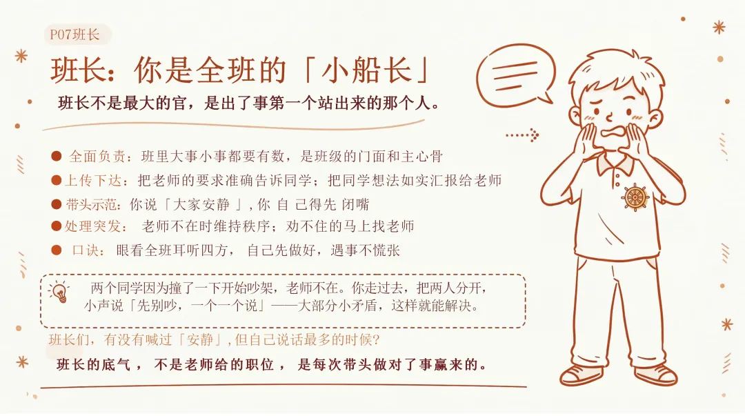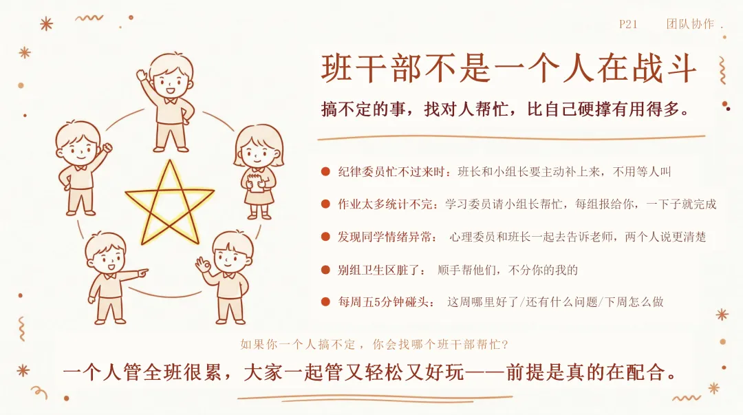 班干部培训主题班会课件ppt:班干部职责说明书,班级管理工作方法实用全攻略(附23页ppt)