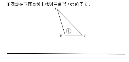 尝试操作:小组讨论并尝试完成探究单任务3:在一条直线上,利用圆规将三角形三条边首尾相接,移动成一条线段,再测量其长度。