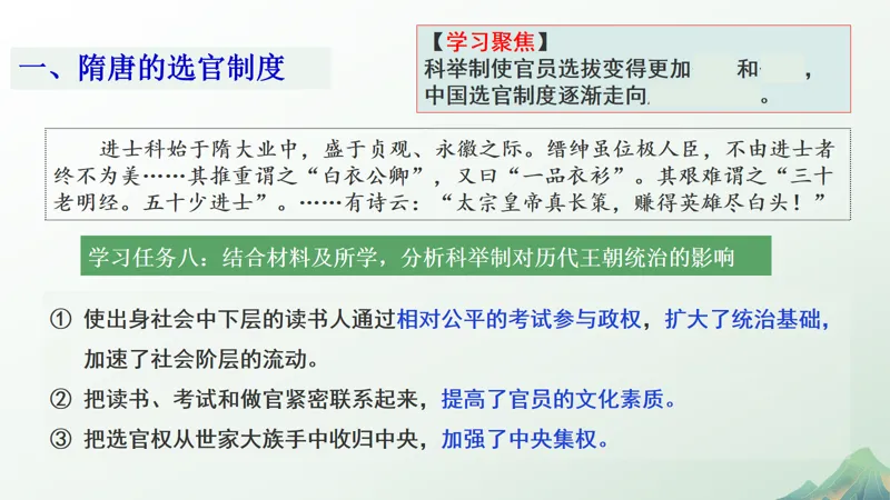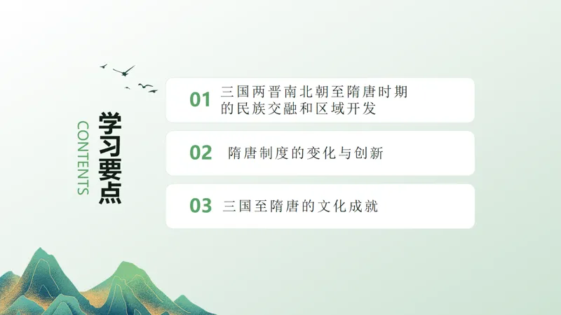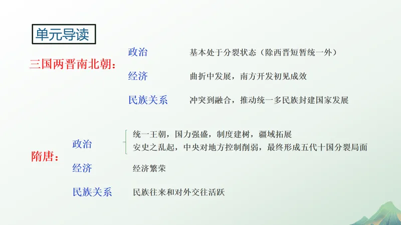 为方便各位同行学考复习,本公众号即日起将连载高一年级《优学精要 浙江学考总复习 历史学业A》的配套课件,今天发布第2讲 三国两晋南北朝的民族交融与隋唐统一多民族封建国家的发展