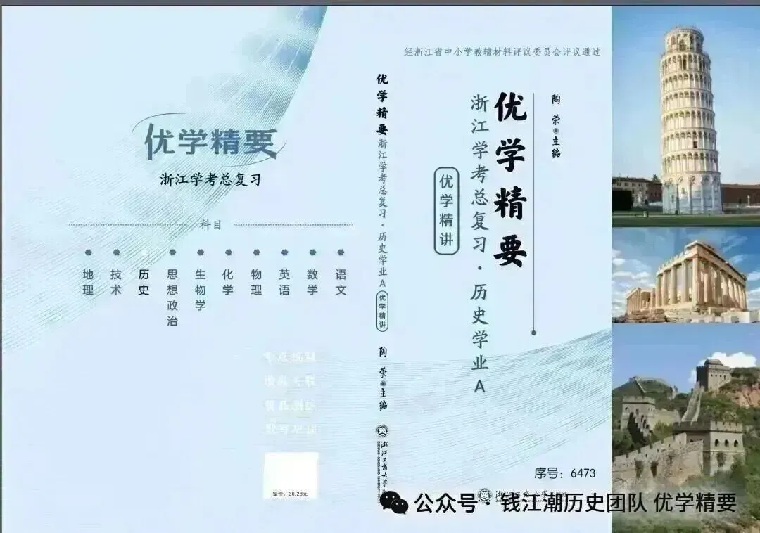 高一年级《优学精要 浙江学考总复习 历史学业A》(序号6473)、高三年级《优学精要 浙江选考总复习 历史融通卷(上册)》(序号6675)、《优学精要 浙江选考总复习 历史能力素养卷(下册)》(序号6676)已正式出版,图书现已上架新华书店,可随时发货至各校。