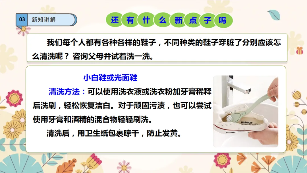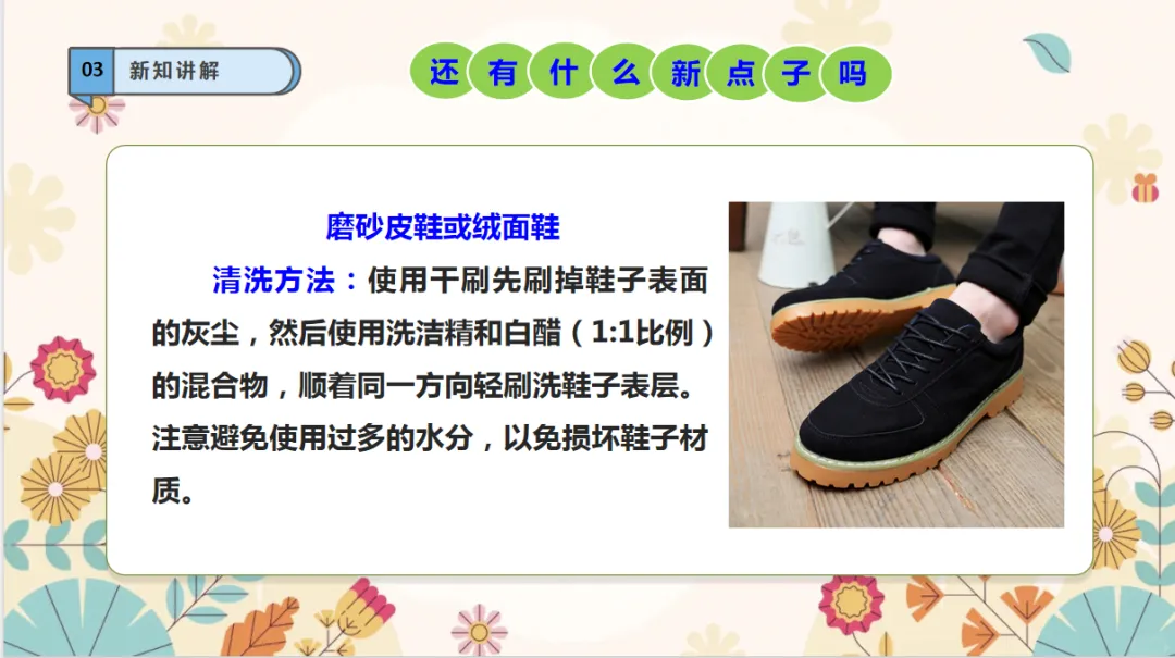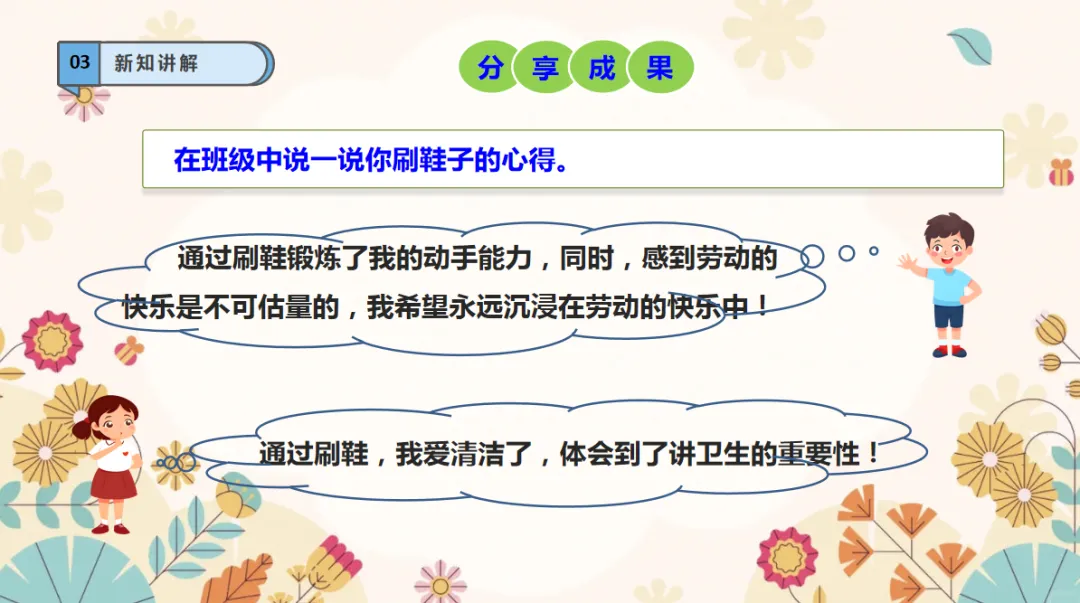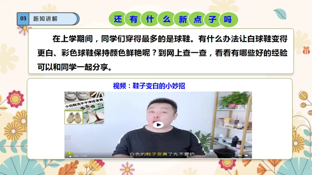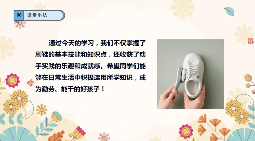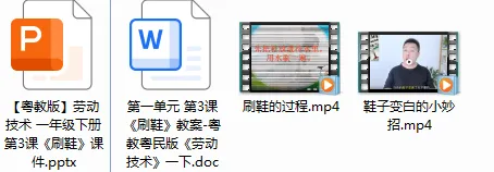 劳动精神:在刷鞋的过程,提升自己的自理能力,形成肯于动脑,不怕吃苦的精神品质。课件+教学设计+视频素材