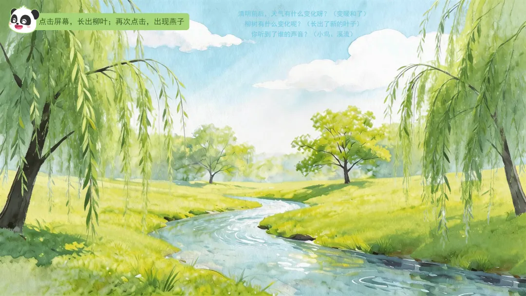 小结:原来,清明的第一个样子是一个充满生命力、温暖的春天。天气变暖和,柳树发芽了,还能听到许多好听的春天声音。