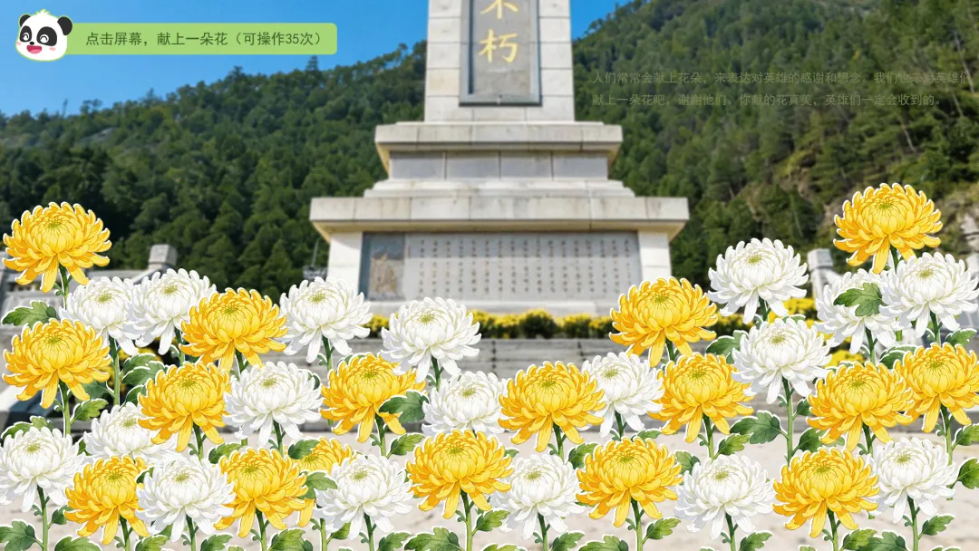 ——人们常常会献上花朵,来表达对英雄的感谢和想念。我们也来为英雄们献上一朵花吧,谢谢他们。