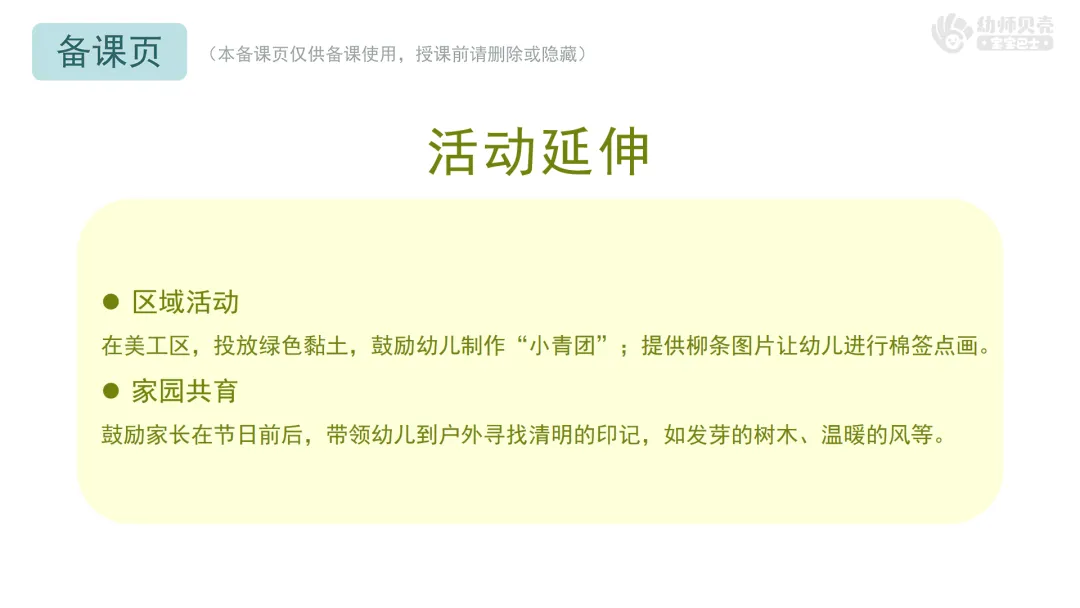 l萌发对春季自然现象的观察兴趣,初步感知清明节所蕴含的生机与温暖。