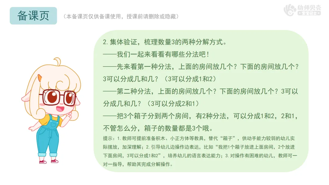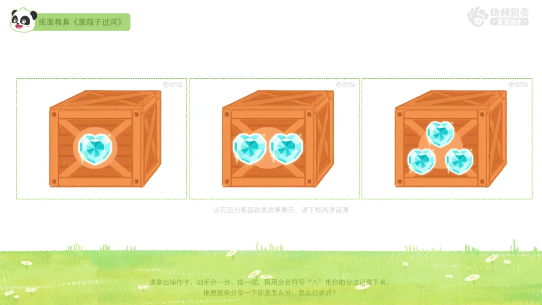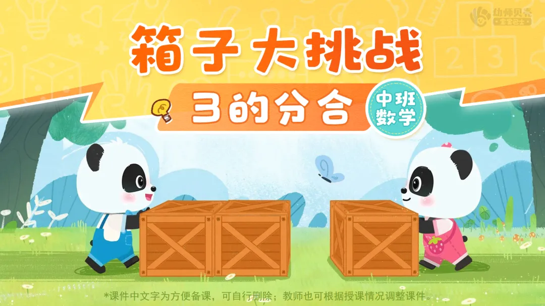 l课件准备:《箱子大挑战:3的分合》PPT。