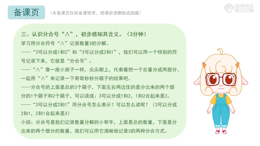 ——今天我们不仅学会了数量3的两种分合方式,还认识了一个特别的符号“∧”。