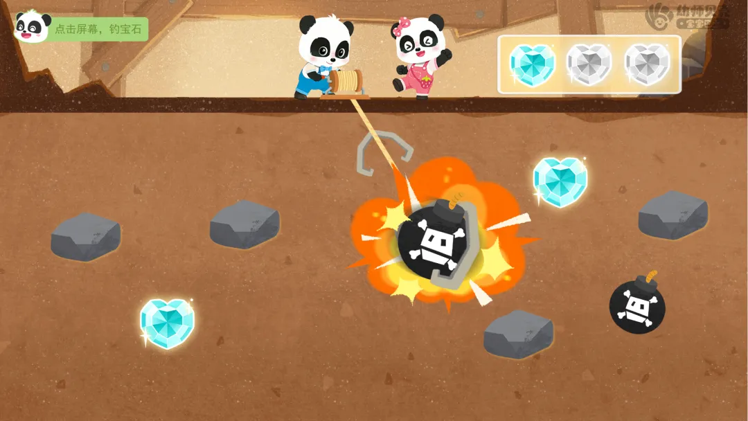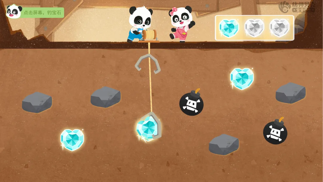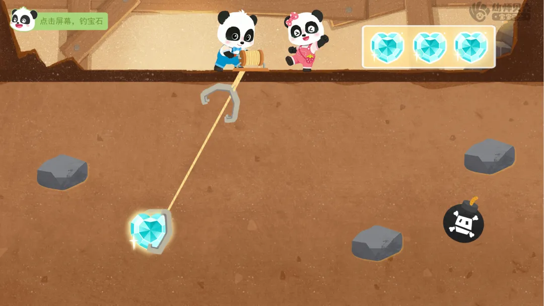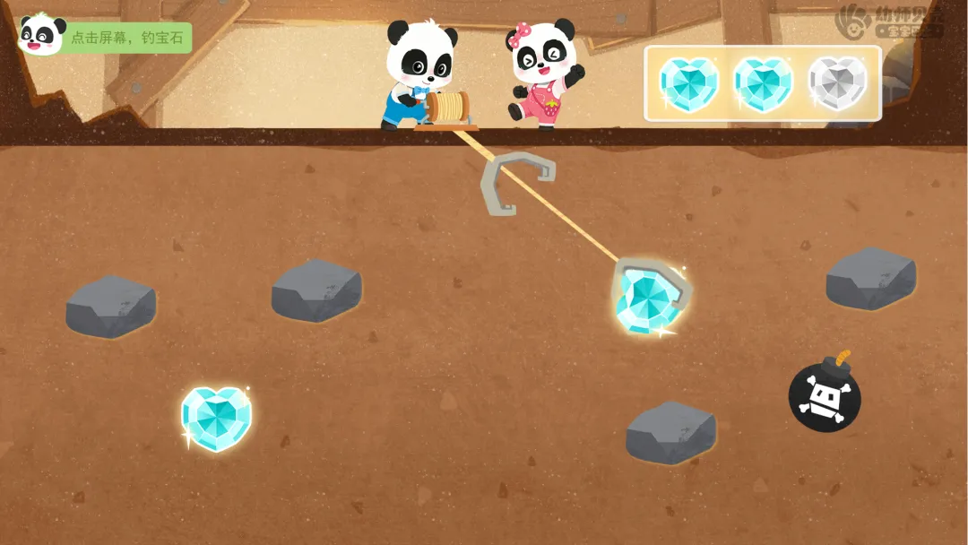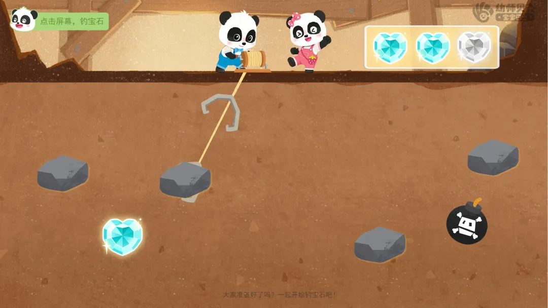 ——太棒了!第一关挑战成功,获得第一枚勋章碎片!再次转动转盘,看看下一个挑战是什么! ——转盘显示数字4,继续前进4格,这次的挑战是“钓宝石”。听听第二关要怎样才能挑战成功吧!