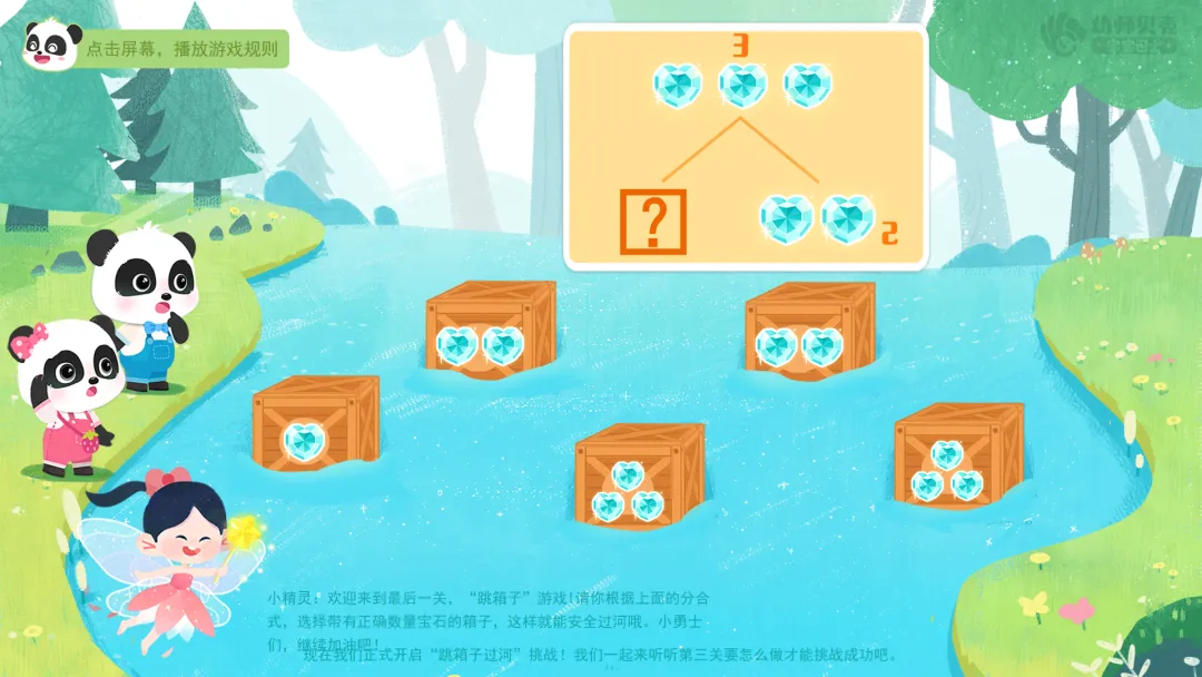 ——大家反应真迅速!现在我们正式开启“跳箱子过河”挑战!一起来听听第三关要怎么才能挑战成功吧。