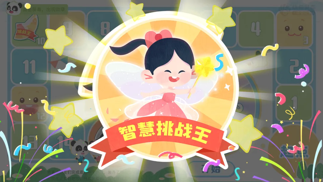 ——恭喜小朋友们完成最后一个挑战,集齐了所有勋章碎片,现在让我们把它们拼成完整的“智慧挑战王”勋章!