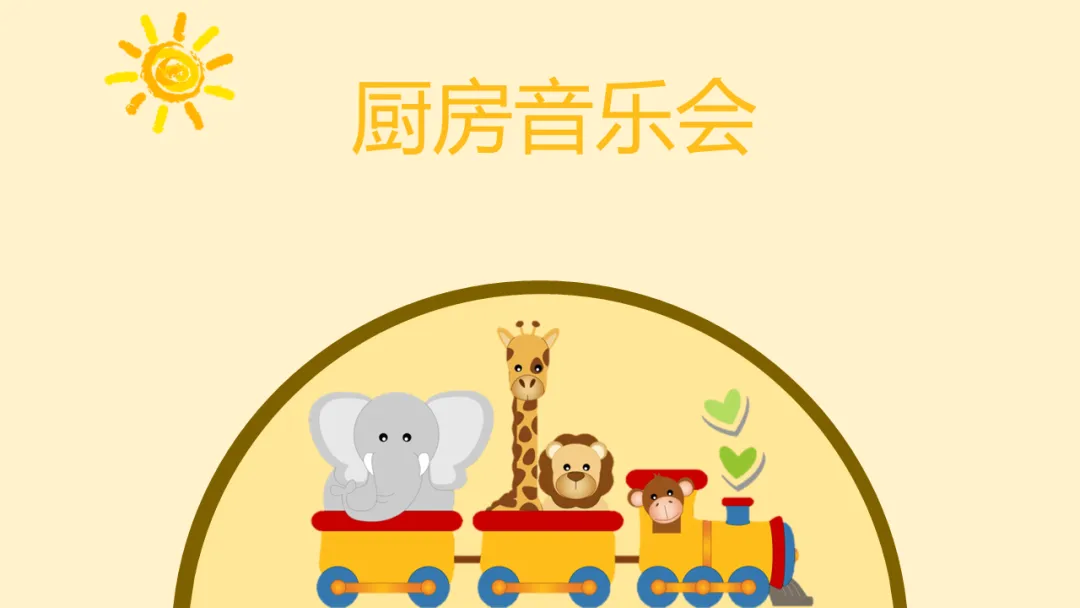 重点:幼儿拿着自己的厨具,和同伴一起随着节奏进行演奏。