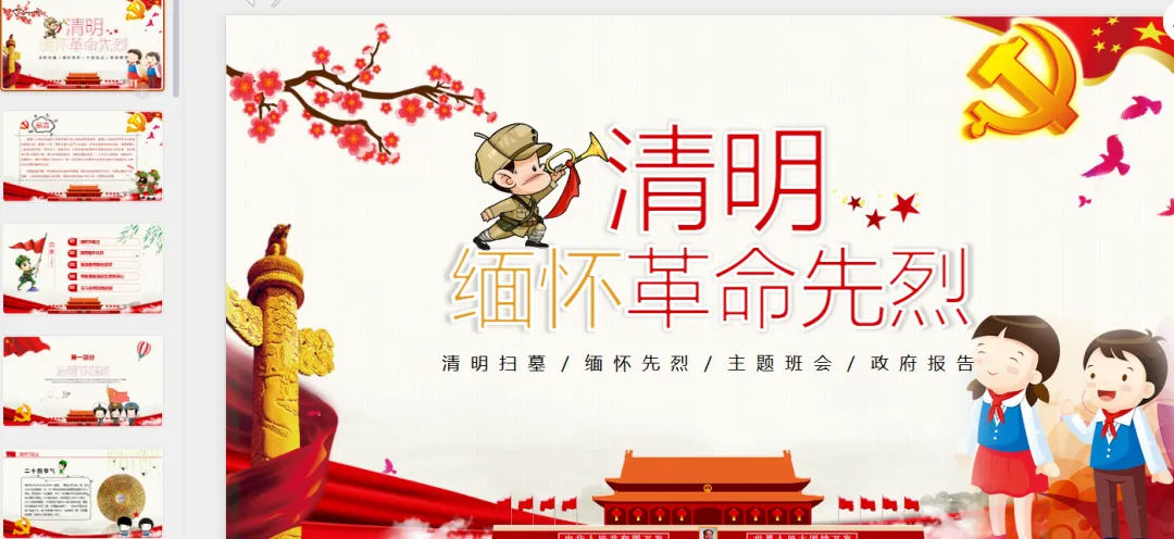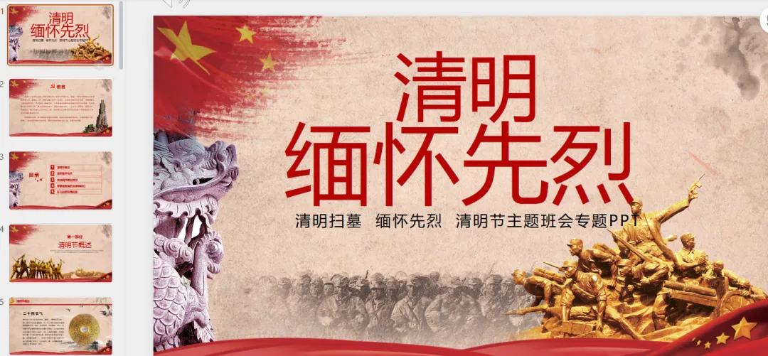 本文分享的是6套清明节祭英烈主题班会PPT模板(免费领取)