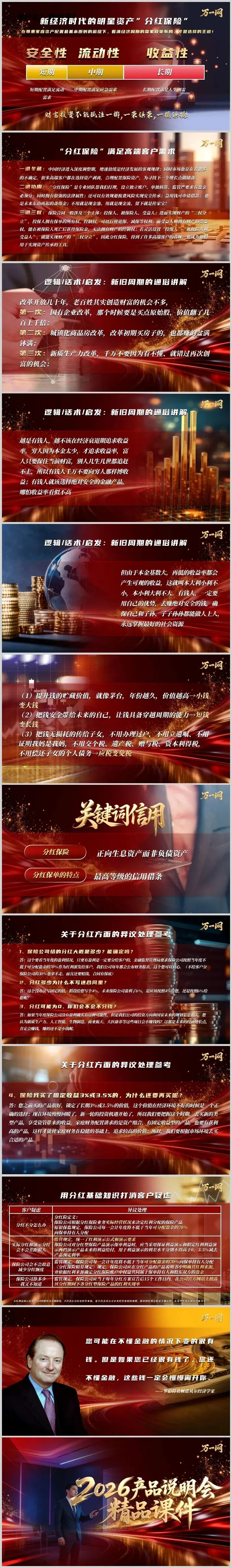 第二板斧:讲公司实力(40%时间)。在客户认同了宏观趋势后,我们需要落地到微观执行者——保险公司。这一环节要讲的是“选对人”的逻辑。需要展示公司的投资哲学、过往经营业绩(尤其是分红实现率)、风险管理能力以及稳健的经营风格。让客户相信,选择这家公司,就是选择了一支专业、可靠、能够穿越周期的投资团队,与自己“结对子”,共同管理财富。