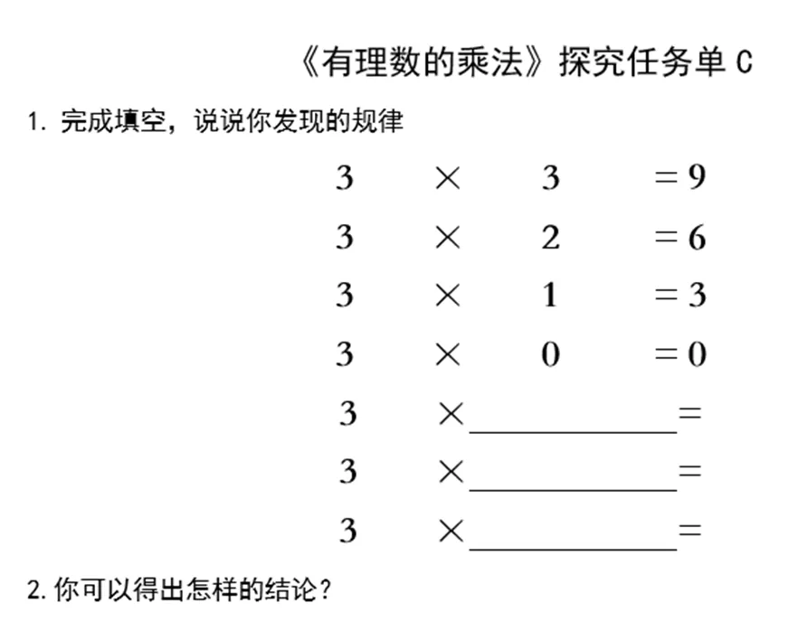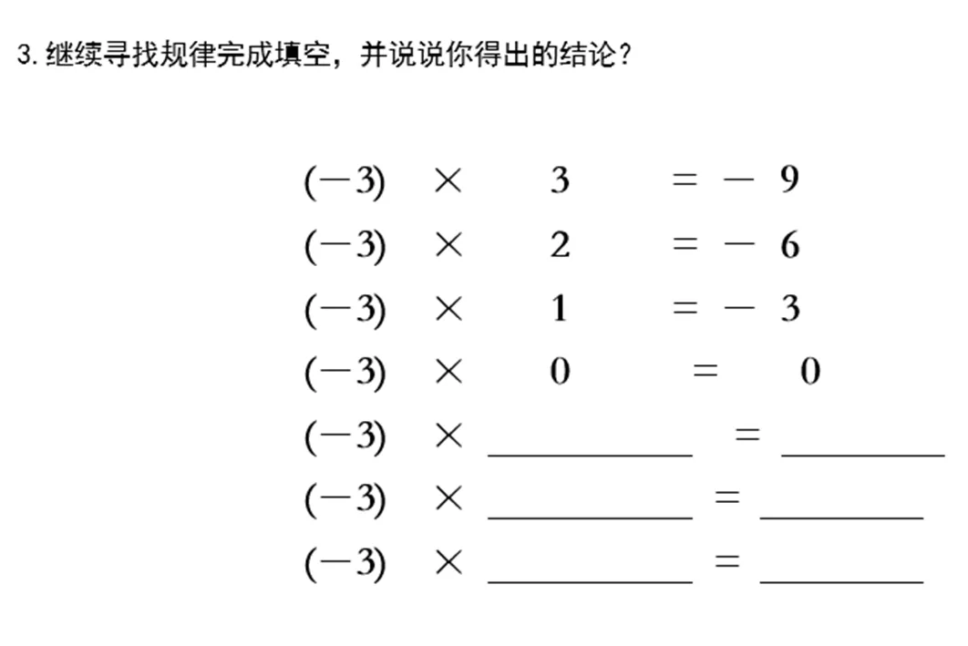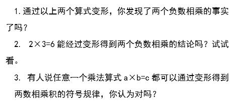 最后让学生思考:那2×3=6能经过变形得到两个负数相乘的结论嘛?