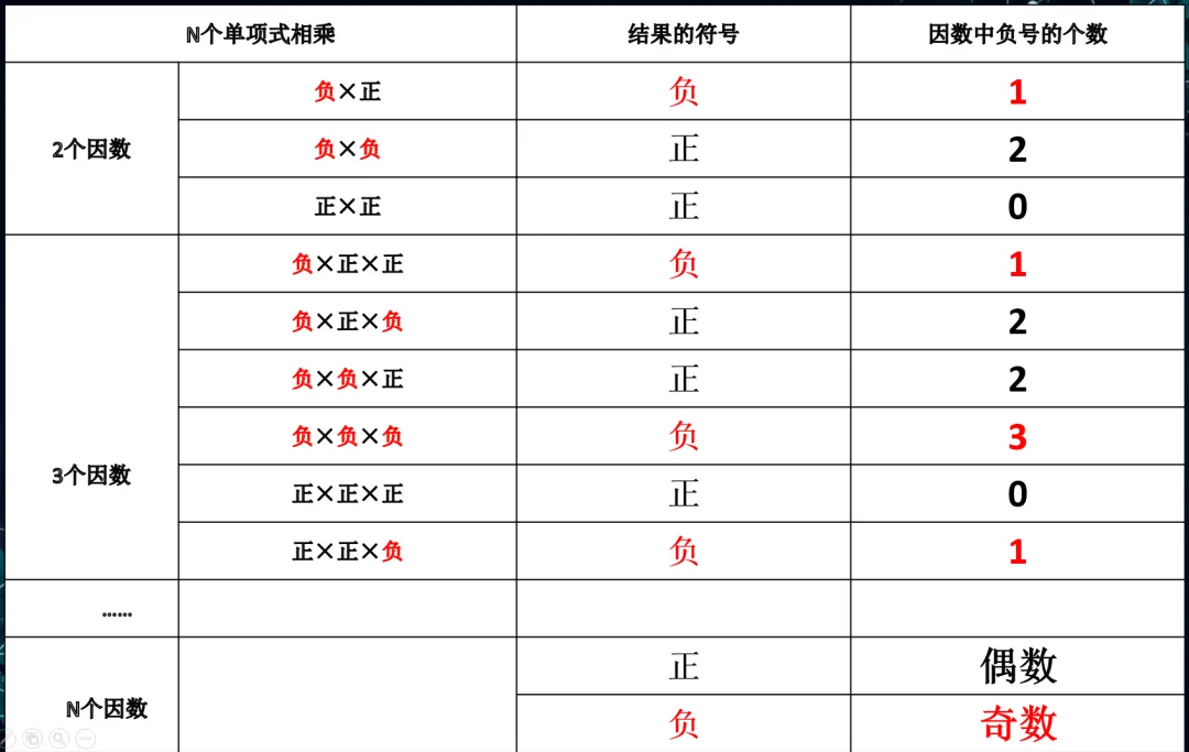 二、多个因数相乘积的符号规律