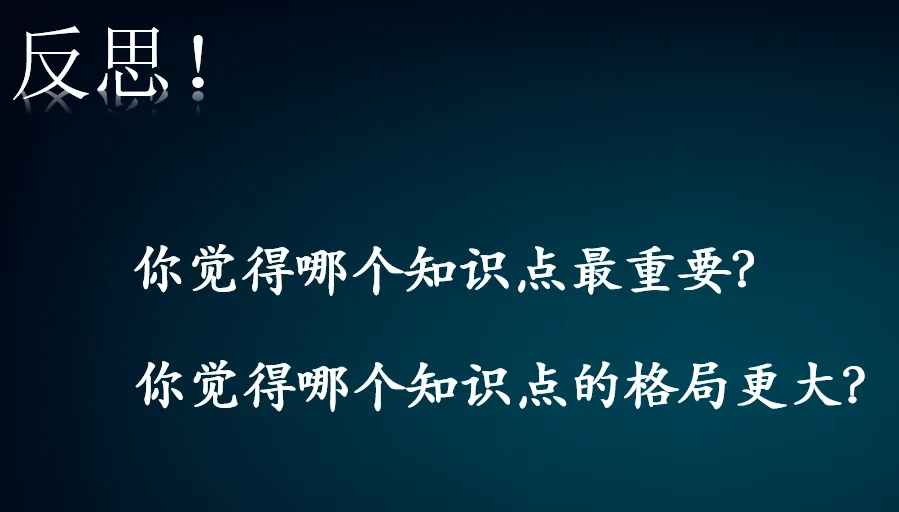 三、教师找学生谈谈自己这节课印象最深的知识。提问:你觉得哪个知识点最重要。你觉得哪个知识点格局更大呢?