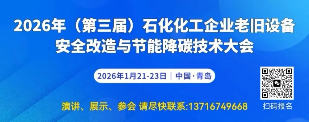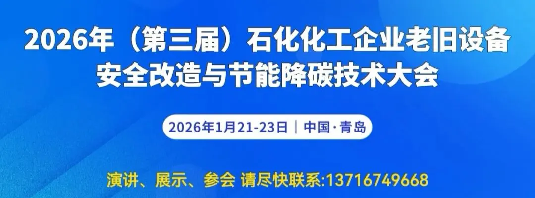 我国石化化工行业起步较早,随着时间推移,部分运行超过 30-40 年的老旧装置因设计标准低、设备腐蚀、监测设 施不足等问题,安全风险日益凸显,为全面推进石化化工行业开展节能减污降碳、智能化改造、工业操作系统升级改造、工业软件升级改造、高效换热、绝热保冷、热泵技术、智能电机、能效评价等安全化、绿色化、数字化综合改造提升, 发展新质生产力,实施本质安全水平提升行动,加大安全技术和装备的推广应用,熟悉相关财政补贴政策,高标准制订设备更新实施方案,在中国石油和石化工程研究会指导下, 中国石油和石化工程研究会石化设备安全运维专家服务(中心)专业委员会、中国机电装备维修与改造技术协会石油石化建安检维修分会、中国石化集团石油化工设备防腐蚀研究中心、中国石油集团安全环保技术研究院有限公司炼化设备技术研究与服务中心定于 2026 年 1 月 21~23 号山东青岛召开 “2026 年(第三届)石化化工企业老旧设备安全改造与节能降碳技术大会”。
