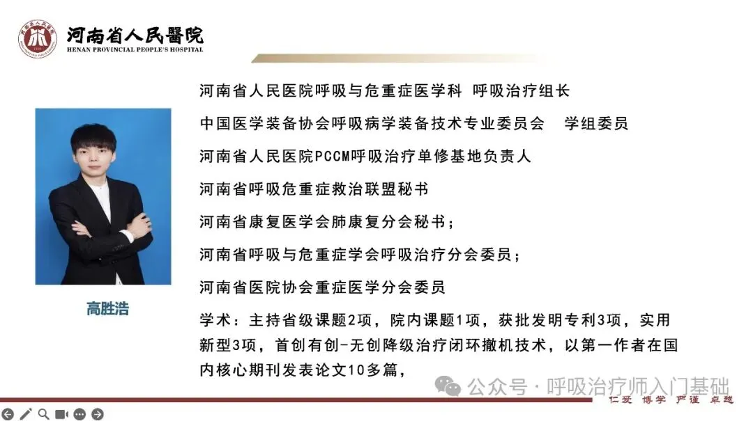 呼吸治疗课程设置: 1.呼吸生理及重要脏器功能受损与呼吸的交互影响 2.呼吸治疗相关的影像知识 3.呼吸治疗评估 4.气道湿化 5.雾化治疗 6.呼吸治疗药理学 7.人工气道管理要点和意外应急处理 8.氧疗 9.血气分析及临床应用 10.呼吸机通气模式及基本原理 11.初始参数设置和调节 12.危急重症疾病病理生理和机械通气策略 13.无创通气及常见问题与处理 14.人工气道、机械通气患者的转运 15.呼吸机安全使用 16.呼吸机装配自检、维护、及使用要点 17.呼吸机波形分析和人机对抗 18.纤支镜技术在人工气道机械通气中的应用 19.呼吸治疗专业团队的组建和管理.