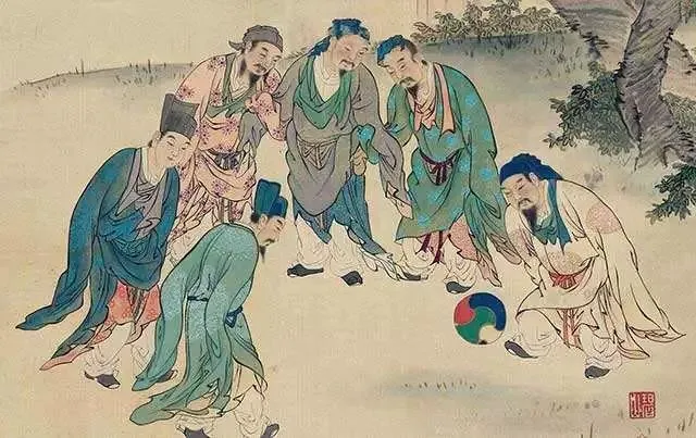 蹴鞠在唐宋时期最为繁荣,经常出现“球终日不坠”,“球不离足,足不离球,华庭观赏,万人瞻仰”的情景,《宋太祖蹴鞠图》描绘的就是当时情景。杜甫的《清明》诗中写到,“十年蹴鞠将雏远,万里秋千习俗同”,也说明了当时蹴鞠活动的普及。在讲求“中庸”的传统文化背景下,蹴鞠逐渐由对抗性比赛演变为表演性竞技。到了清代,在史籍上有关蹴鞠活动的记载,就寥寥无几了。