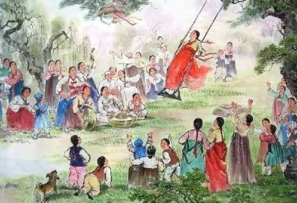秋千之戏在南北朝时已经流行。《荆楚岁时记》记载:“春时悬长绳于高木,士女衣彩服坐于其上而推引之,名曰打秋千。”唐代荡秋千已经是很普遍的游戏,并且成为清明节习俗的重要内容。由于清明荡秋千随处可见,元明清三代定清明节为秋千节,皇宫里也安设秋千供皇后、嫔妃、宫女们玩耍。如今的公园和游乐场仍然有秋千,供儿童玩耍。