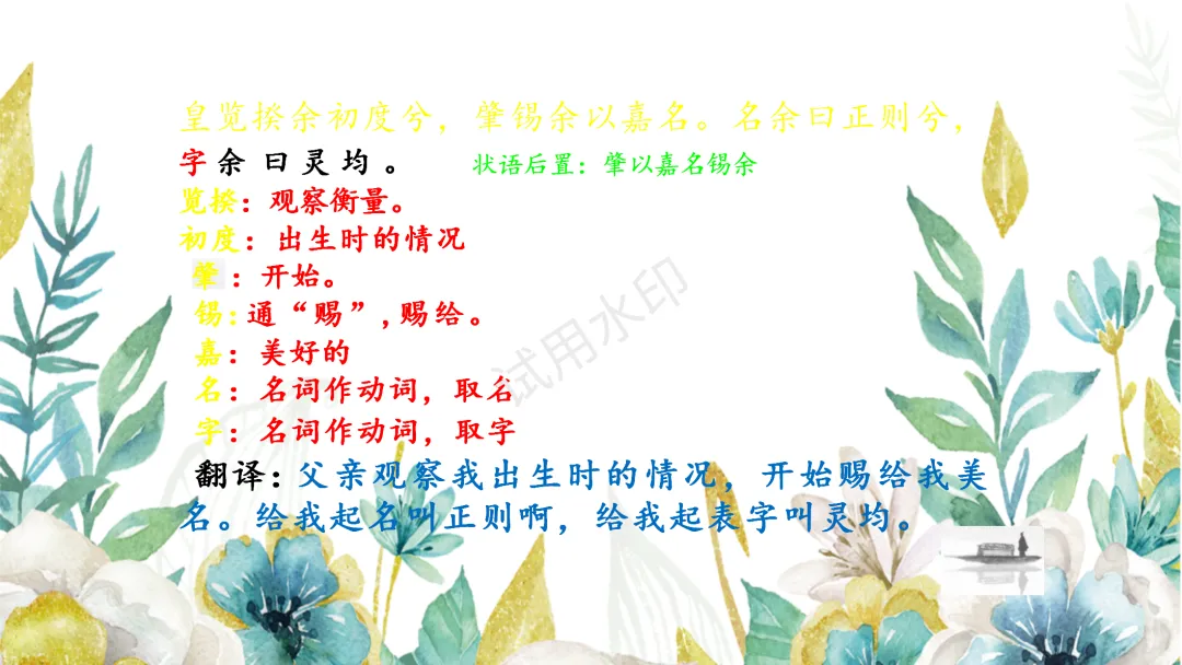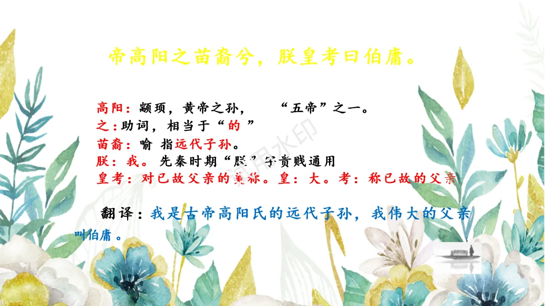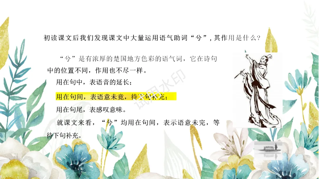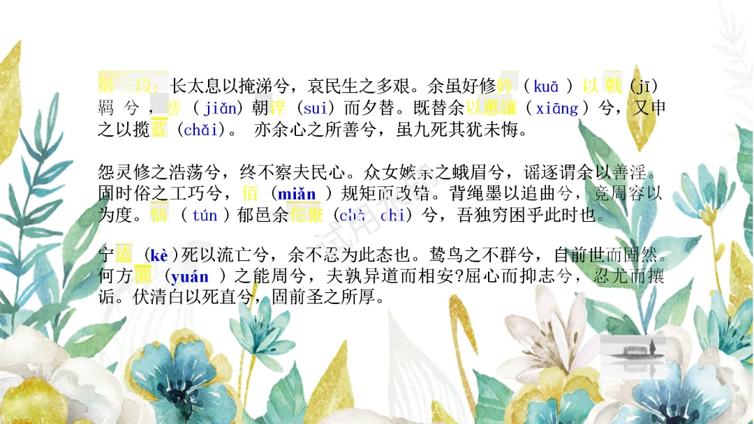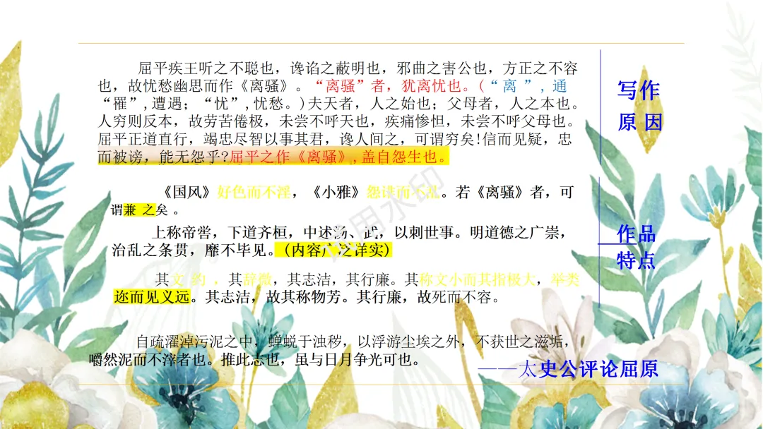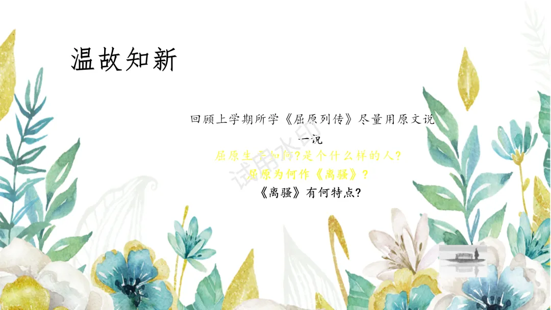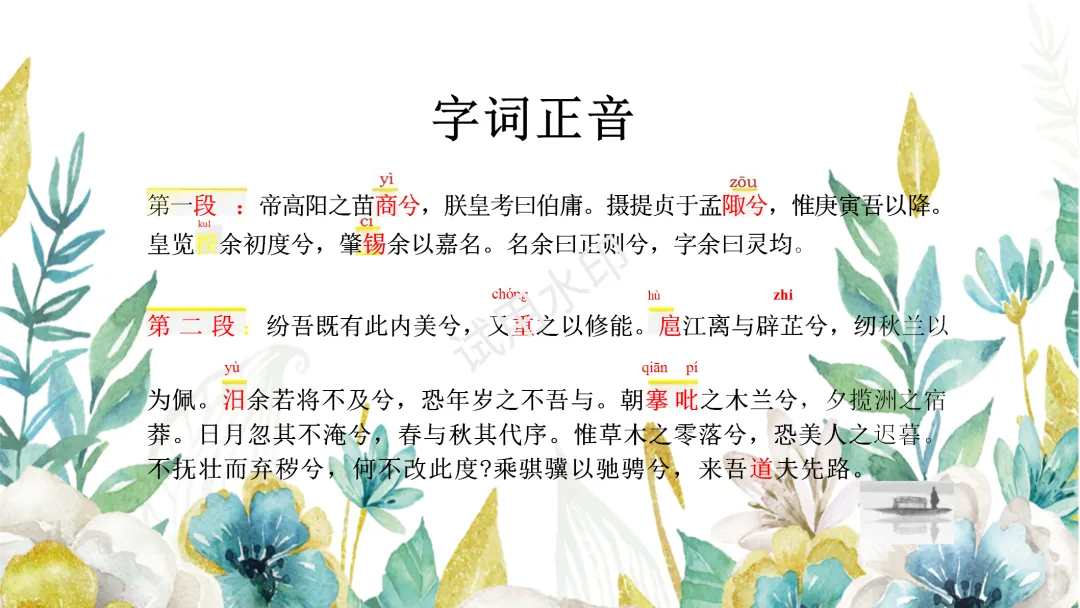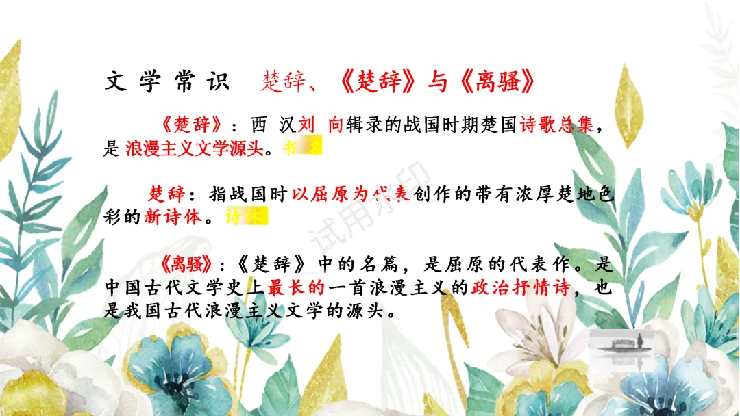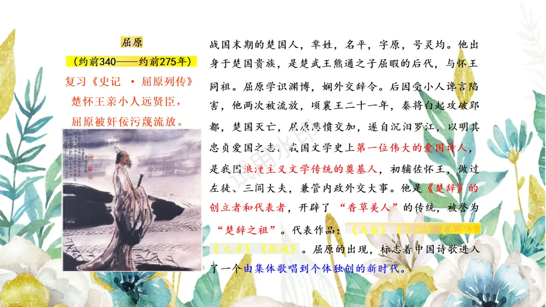 部分课件展示,如需此课件,可转发此文章到朋友圈3小时,或者支付5元。截图发送后台,即可获得此课件。统编版高中语文《离骚》教学课件介绍