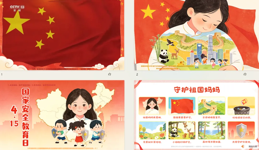 小结:每年的4月15日是国家安全教育日,提醒大家要一起保护祖国妈妈,学习保护国家安全的方法。