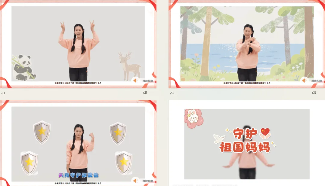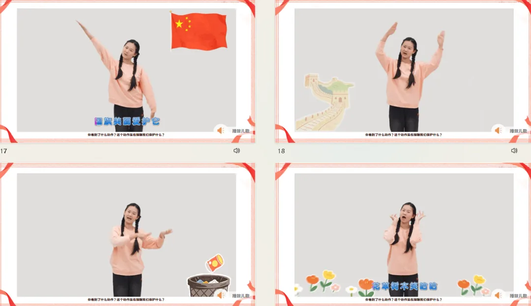 四、学唱儿歌及手势舞,巩固保护祖国妈妈的方法。