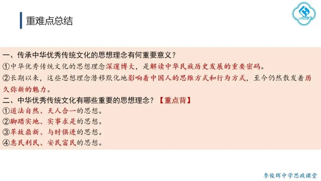 课时一:我们应该如何理解中华优秀文化的思想理念?(对应课题:《历久弥新的思想理念》)