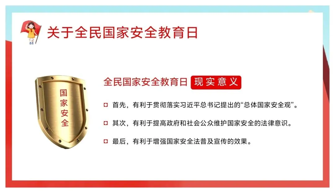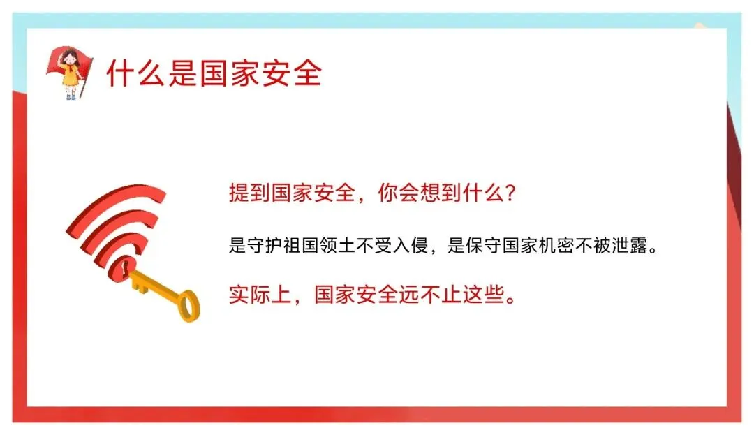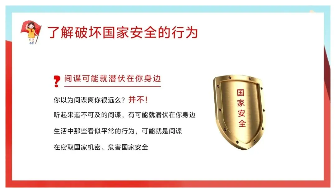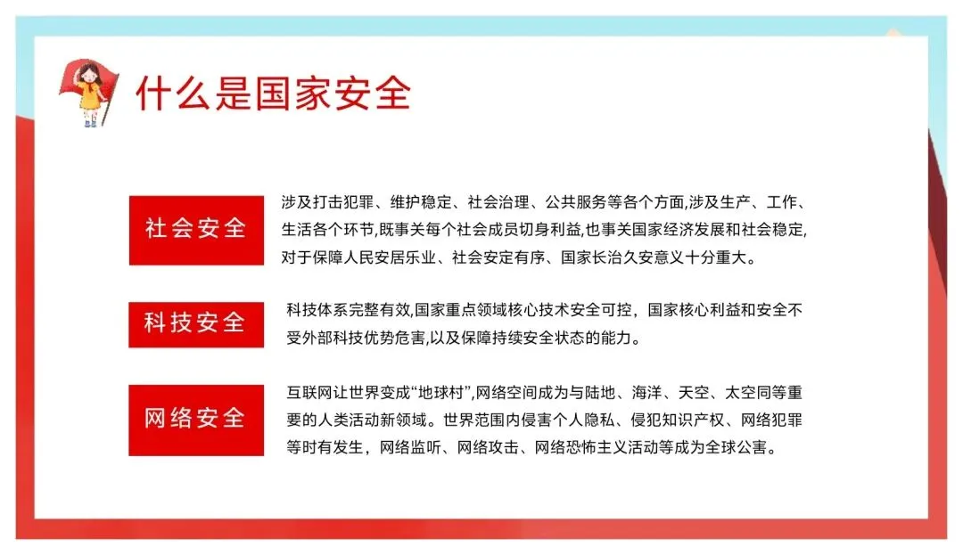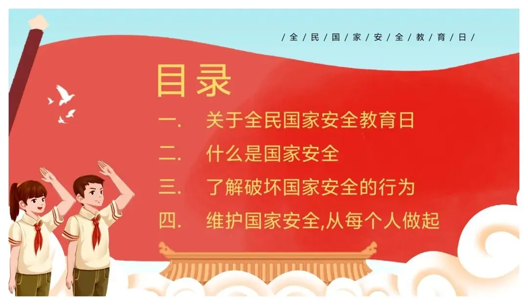 这份中小学专属主题班会课件,从安全教育日由来、国家安全定义,到识别破坏国家安全行为、日常守护方法,四大板块清晰讲解,还含真实案例、12339举报渠道和公民义务,让孩子懂安全、会守护,国家安全,人人有责!