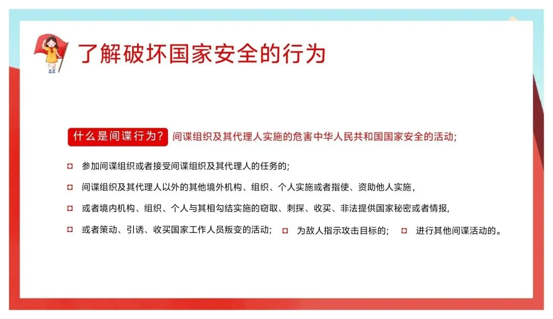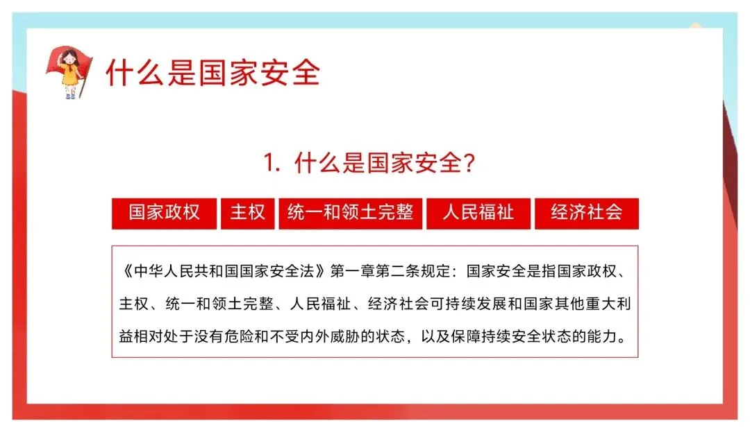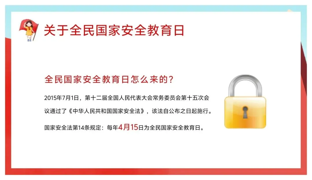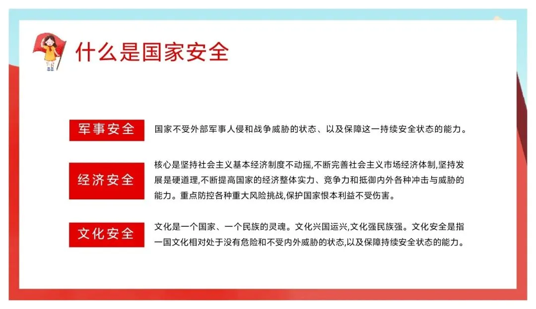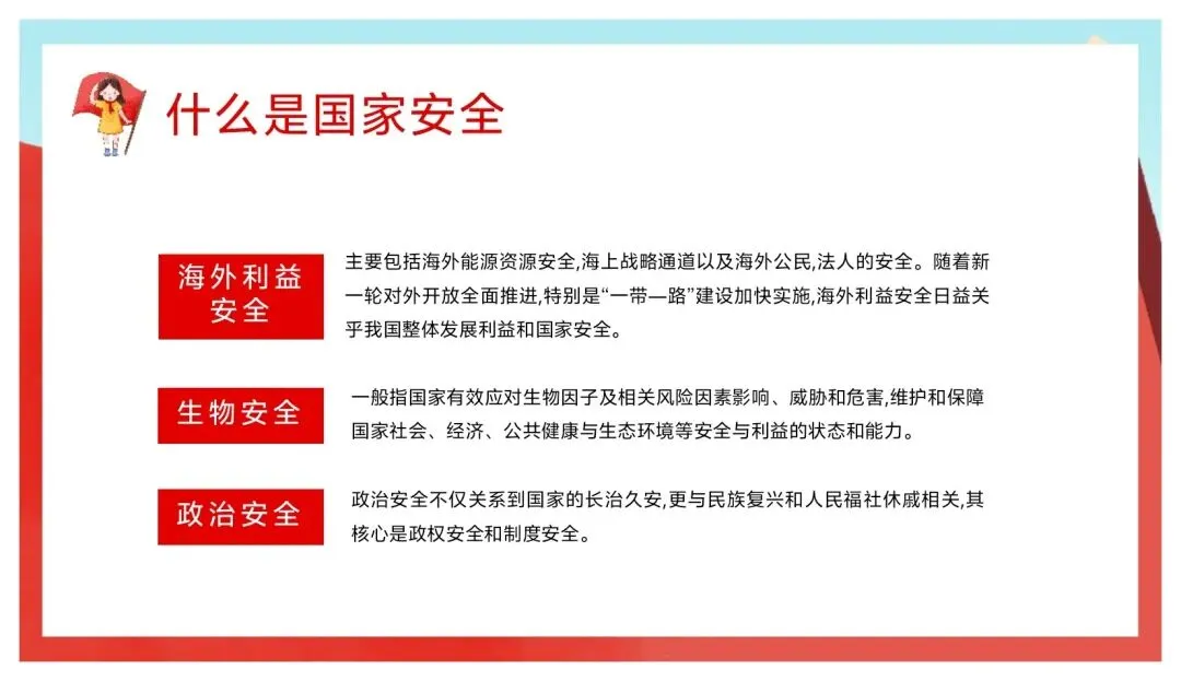 这份中小学专属主题班会课件,从安全教育日由来、国家安全定义,到识别破坏国家安全行为、日常守护方法,四大板块清晰讲解,还含真实案例、12339举报渠道和公民义务,让孩子懂安全、会守护,国家安全,人人有责!