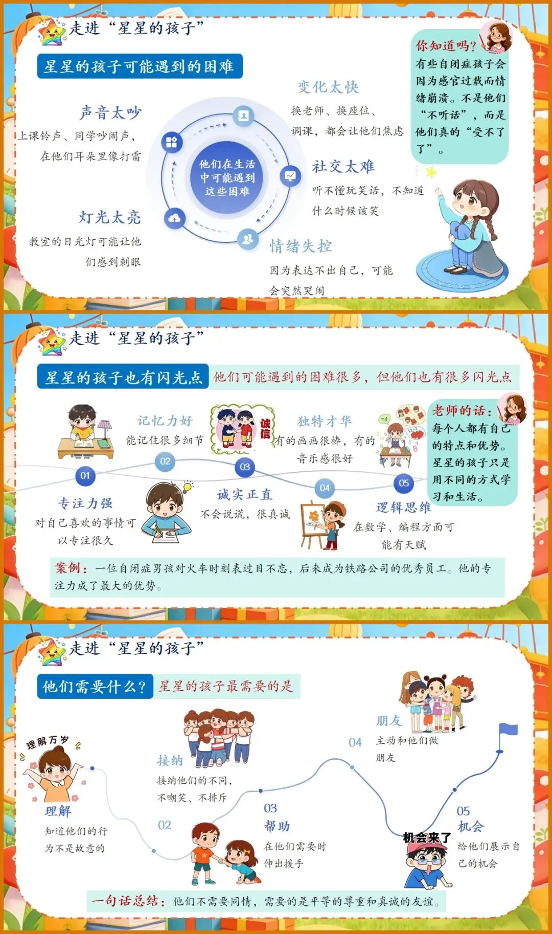 从认识“星星的孩子”、走进他们的世界,到教孩子怎么正确相处、知识闯关,每一页都超用心!