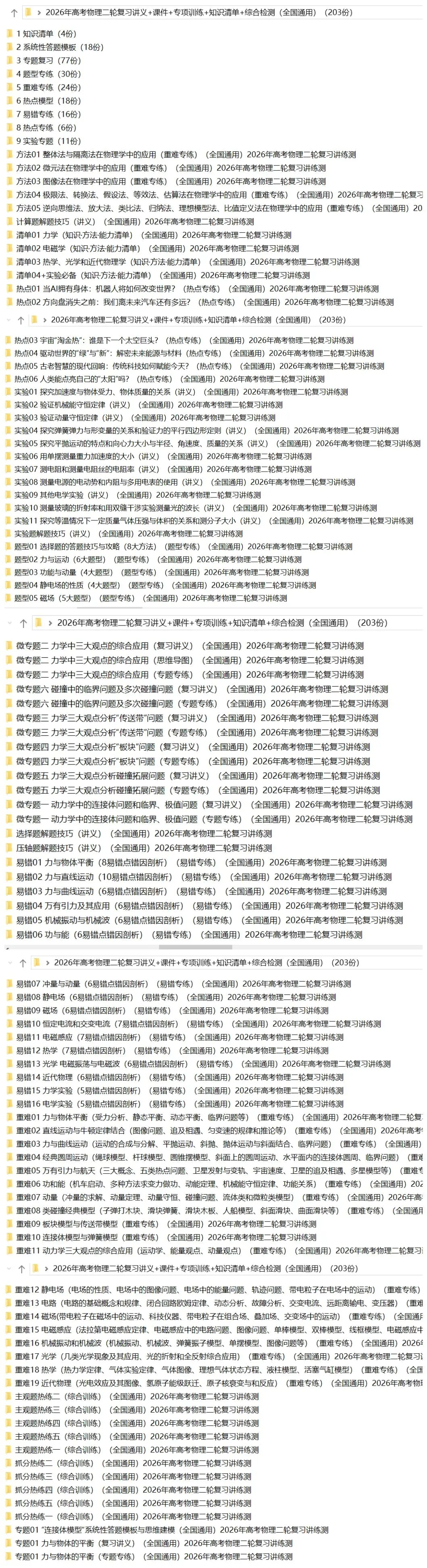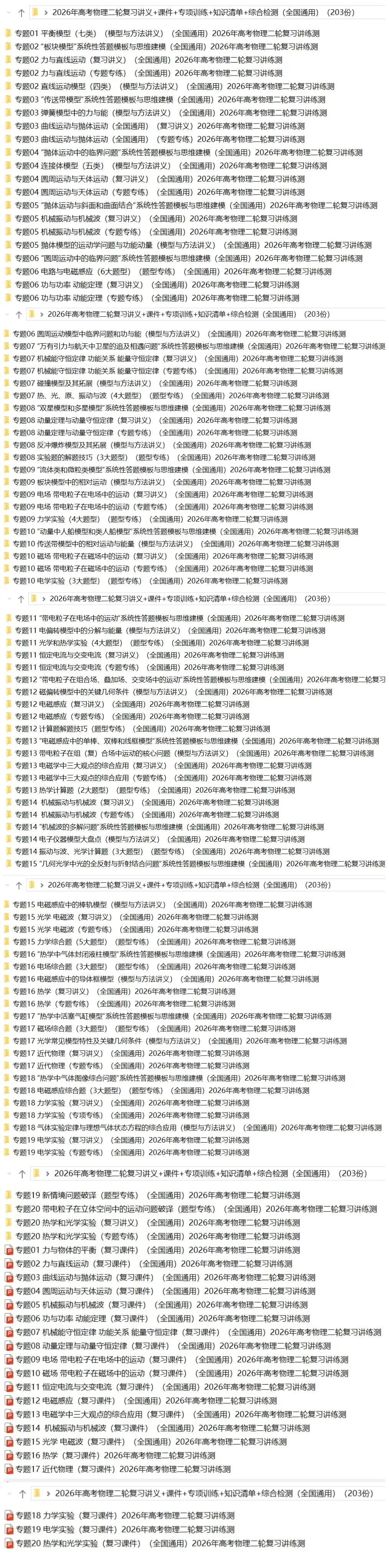 >【2026年高考物理】二轮复习讲义+课件+专项训练+综合检测+知识清单203份含全解全析(全国通用)全部完整电子版文档文末有下载方式